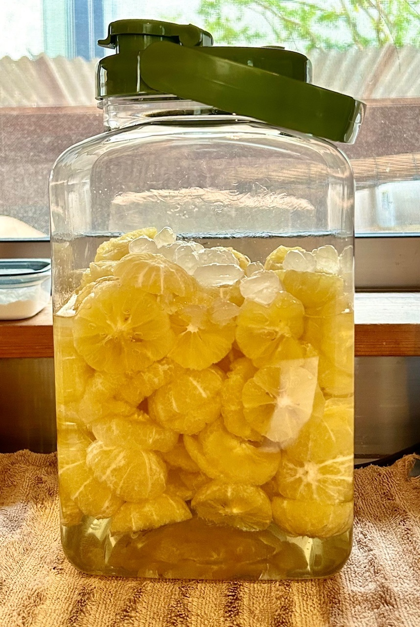 前回と変えたのは氷砂糖をロック→クリスタルにしたことと、スダチと氷砂糖を交互に入れたこと。