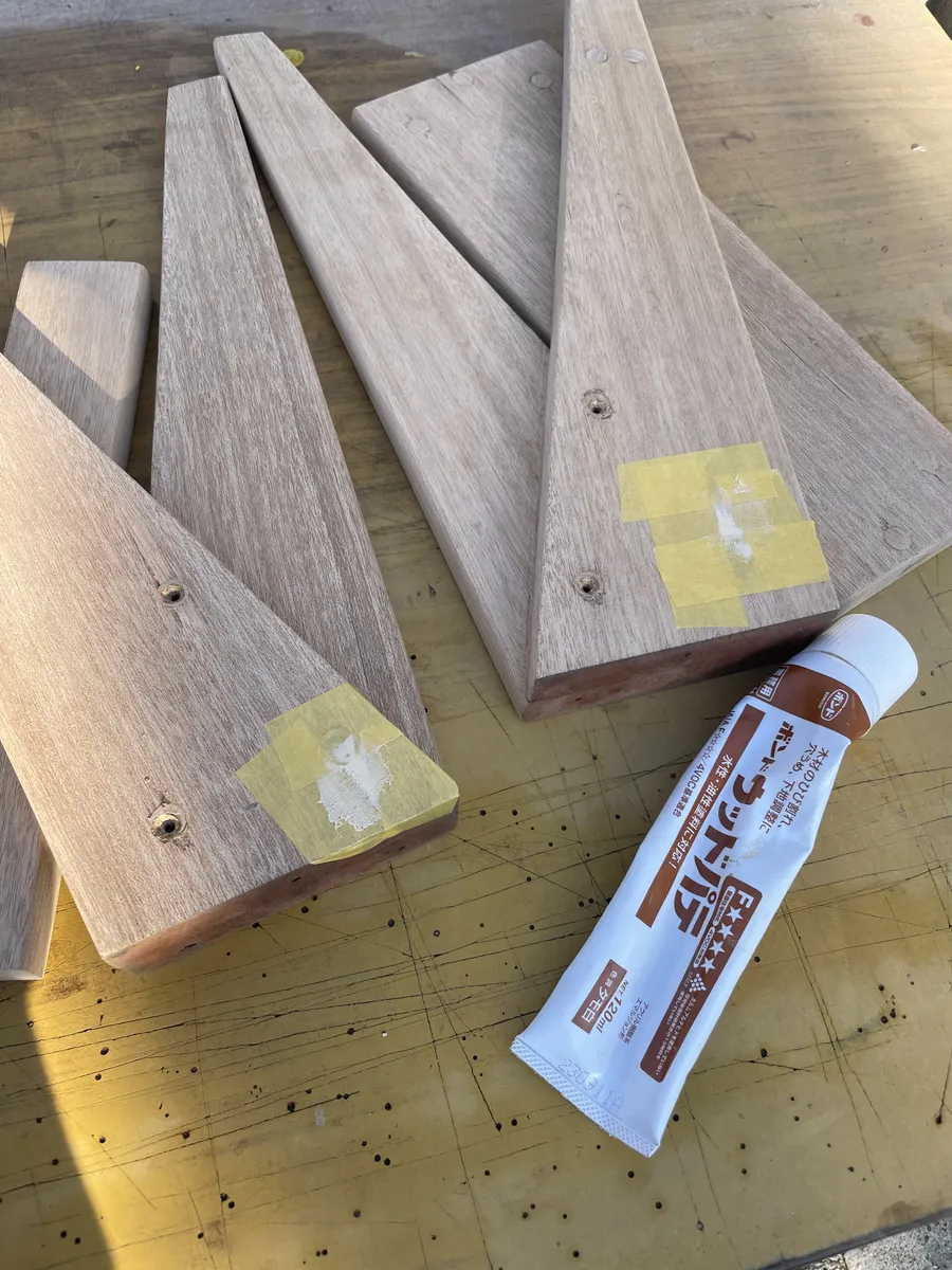 ↓欠落した材の部分をパテ埋めをしてます。