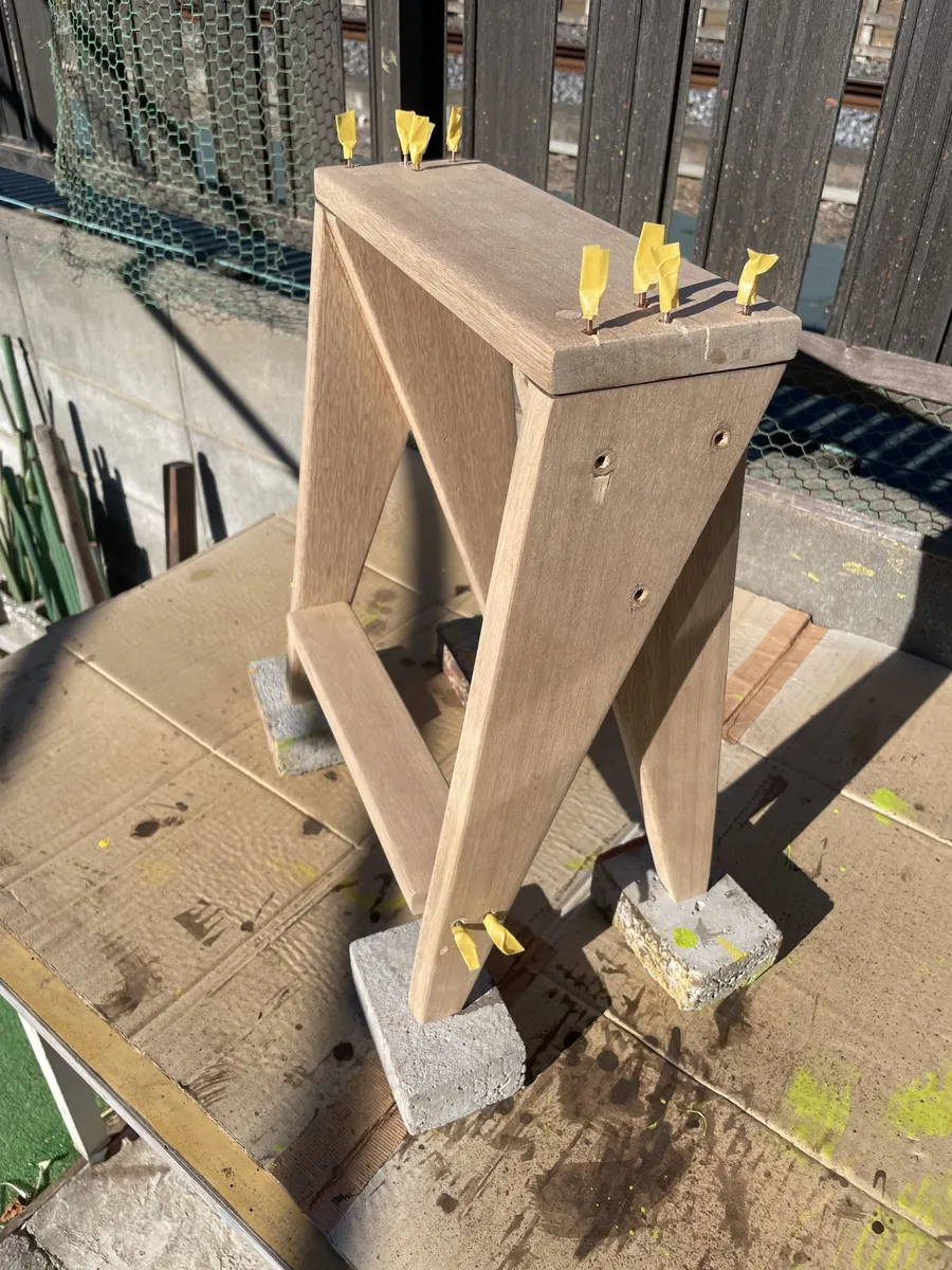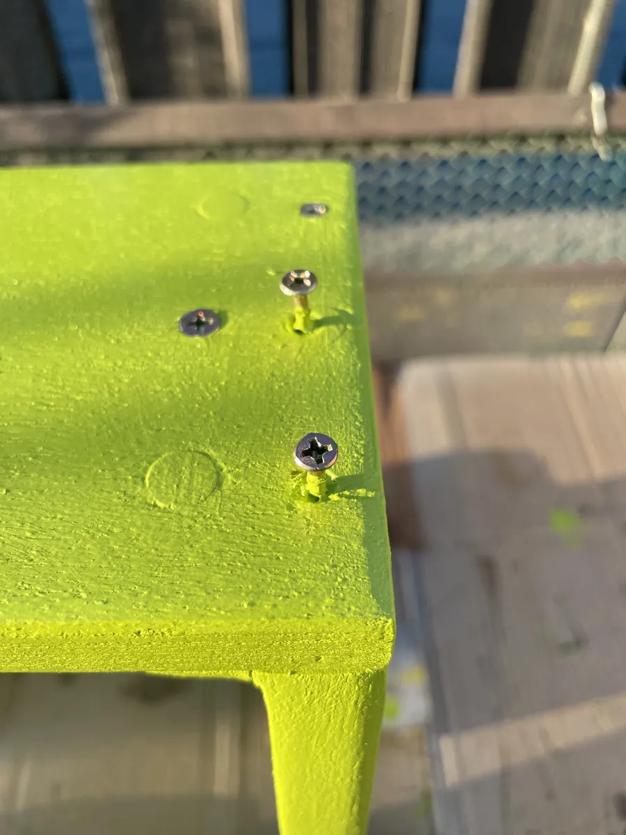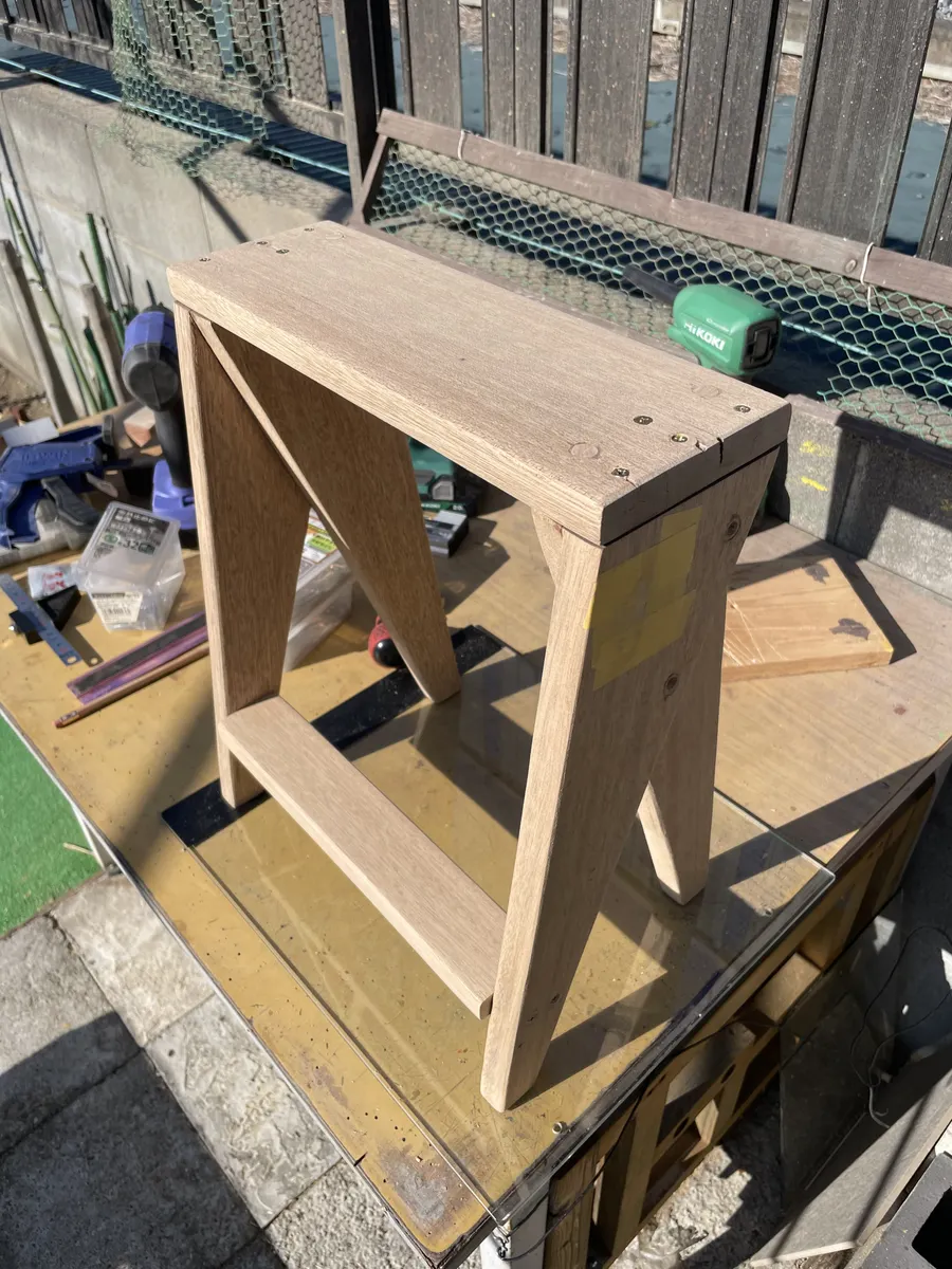 今回こだわったのは、ビスが材に埋もれない事。外に置きっぱなので、雨降りで水が溜まって材が傷まないようにと。