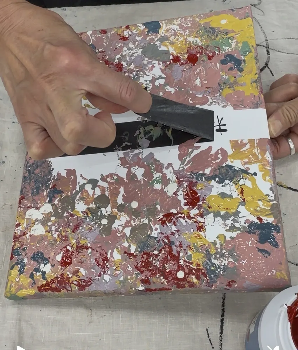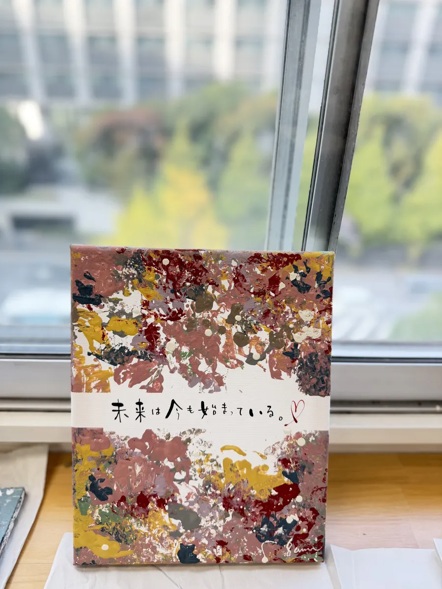 真ん中のテープをめくるとメッセージが出て来ます。用意したキャンバス全部違うメッセージだそうです。