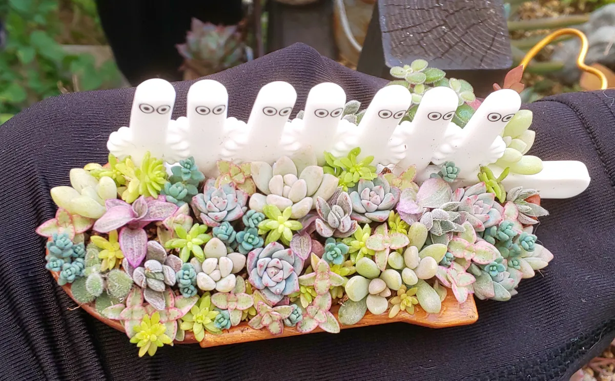 かわいい入れ物見ると何でも穴あけて多肉植えたくなる病気です🤣