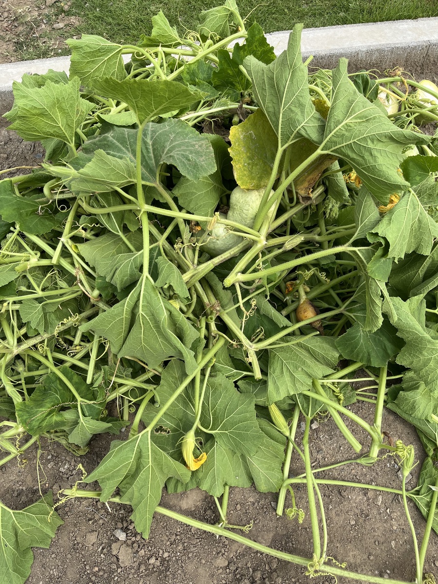 トップ > グリーン > カボチャの摘芯と摘果をしました toshi 2024/08/05 15:48 カボチャの摘芯と摘果をしました 昨日に続き、カボチャの摘果と摘芯をしました。よくわからないので見よう見まねです。と言うか我流です。暑かったので集中力が無くなり切らなくても良い蔓も切ってしまいました。まぁいいか。とりあえず庭はスッキリしました。それだけでも良かったですありがとう いいね 共有する 共有する X LINE リンクをコピー コメントする 1 件の返信 (新着順) ミュートしたユーザーの投稿です。 投稿を表示 🐰 さ び う さ 🐰 2024/08/06 12:49 わあ❣️ 葉(つる)が沢山ですね🌱🌱 この中から かぼちゃ🎃が実んですね❗️ 楽しみですね😊 いいね 返信する ミュートしたユーザーの投稿です。 投稿を表示 toshi 2024/08/06 13:13 🐰 さ び う さ 🐰 いつもコメントありがとうございます。カボチャの蔓が庭の芝の方までも侵食してきてしまっているのでカットしました。間違って大きな実を着けているところまで切ってしまいました。ちょっと落ち込んでいます。繊細さがないんですよね。仕事は早いんですがやっつけ気味なんです。 いいね 返信する ミュートしたユーザーの投稿です。 投稿を表示 🐰 さ び う さ 🐰 2024/08/06 13:20 toshi 『間違って大きな実を着けているところまで切ってしまいました。ちょっと落ち込んでいます』… お気持ち、わかりますー‼️ 私は、野菜ではないですが、 枯れたお花を切っていて、 まだ綺麗な花まで切ってしまった時に ガッカリします😞💦 これから実るかぼちゃに期待して、 元気出してくださいね😉 いいね 返信する ミュートしたユーザーの投稿です。 投稿を表示 toshi 2024/08/06 15:53 🐰 さ び う さ 🐰 ありがとうございます。切ってしまったカボチャもしかしたら追熟するかもとかすかな期待を寄せテーブルの上に置いてます。 いいね 返信する