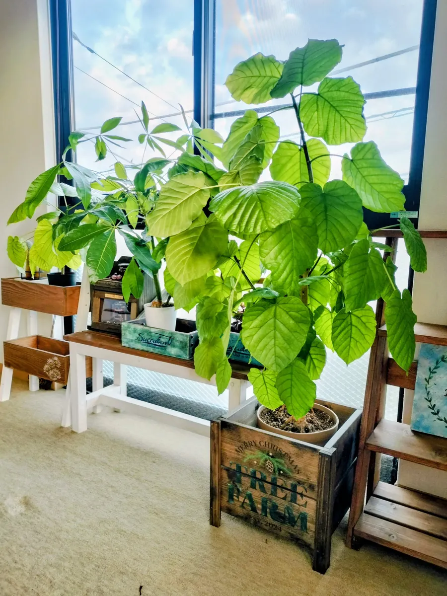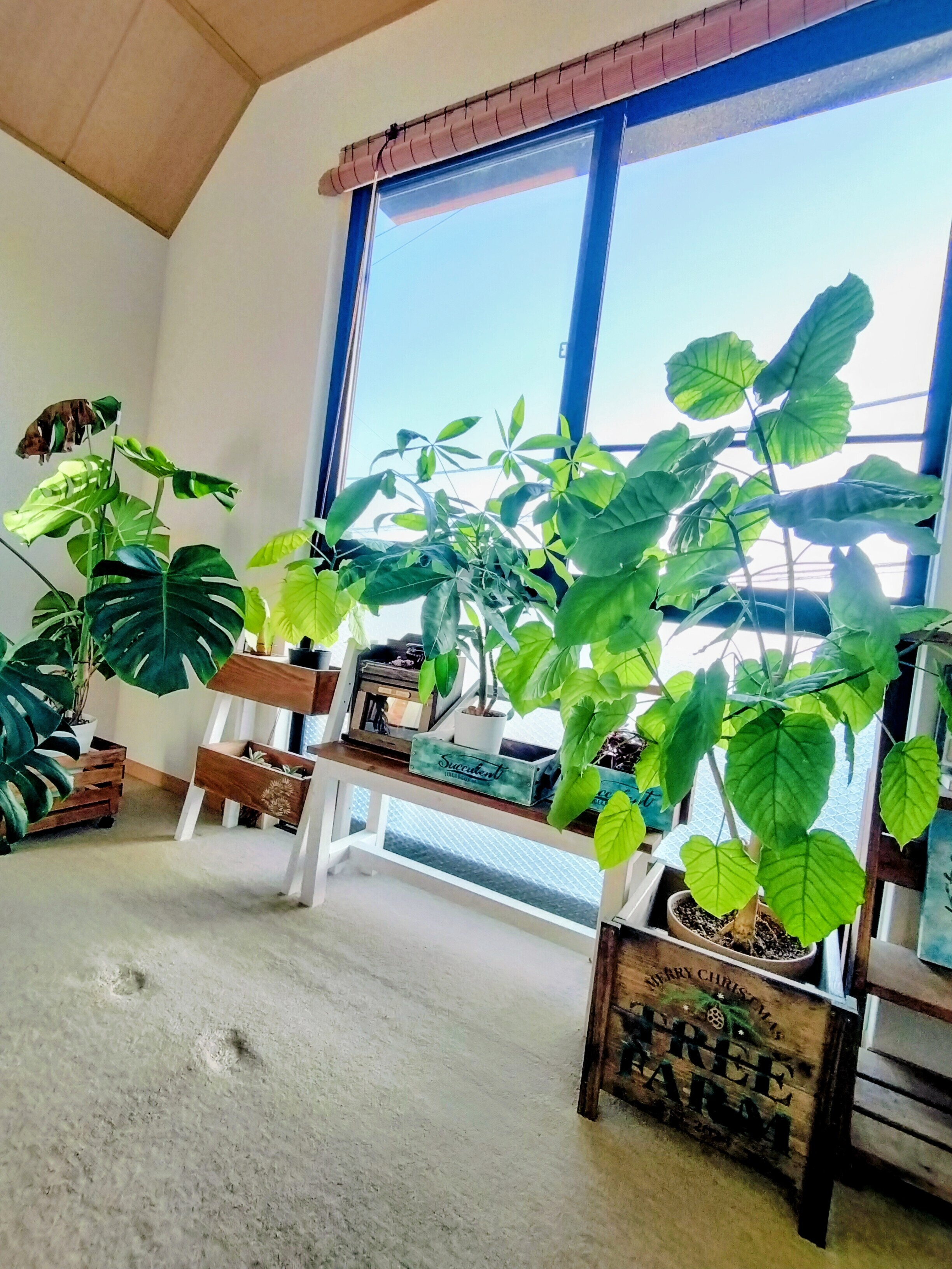 家を建てた時にお祝い(20年以上前😅)でいただいたパキラはだいぶ前に枯れたので挿し木を数年ごとに繰り返しもう何代目かわかりませんがまだ生育中。