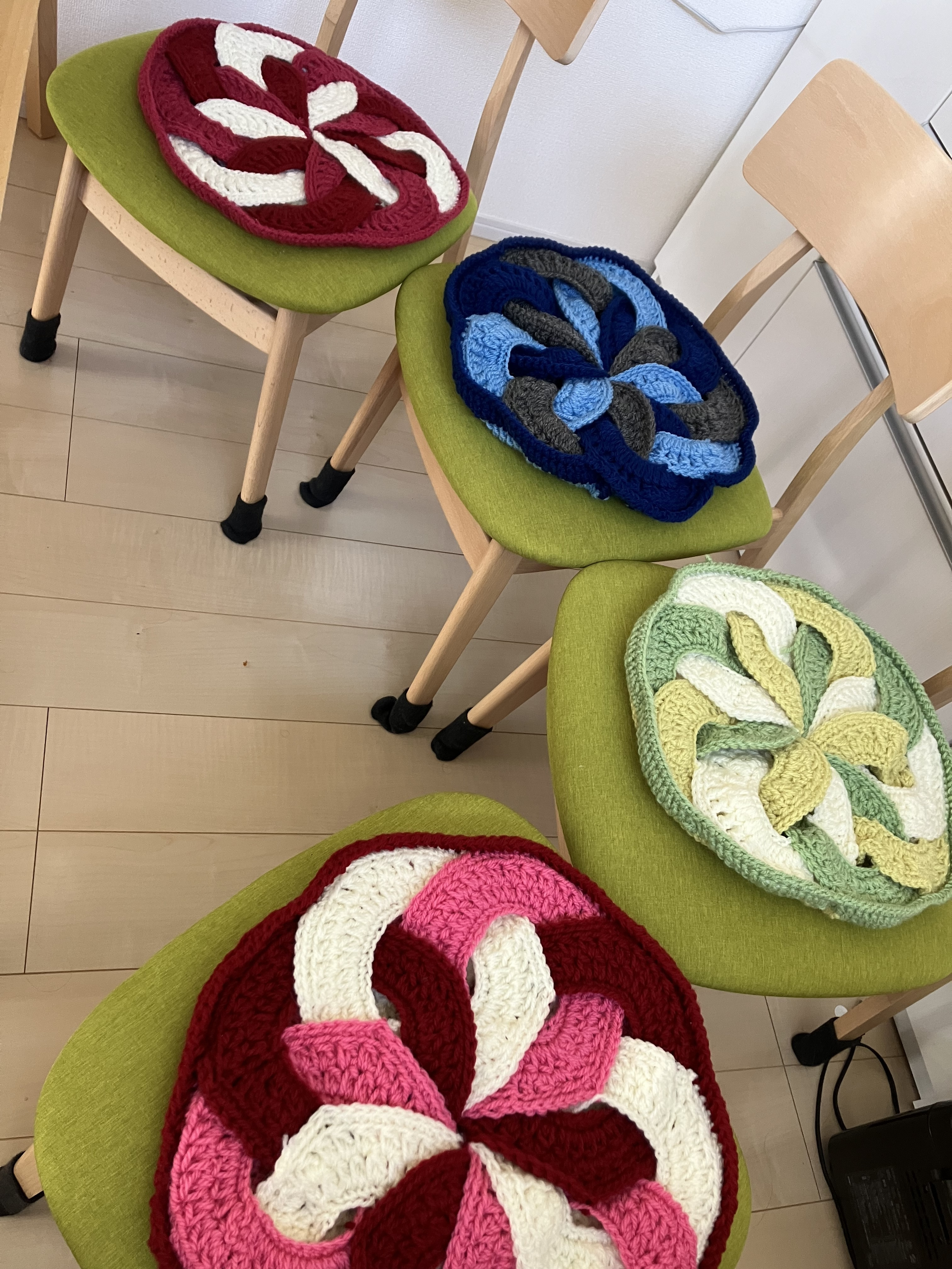 投稿を表示色違いの座布団、どれに座ろうか悩みますね😊