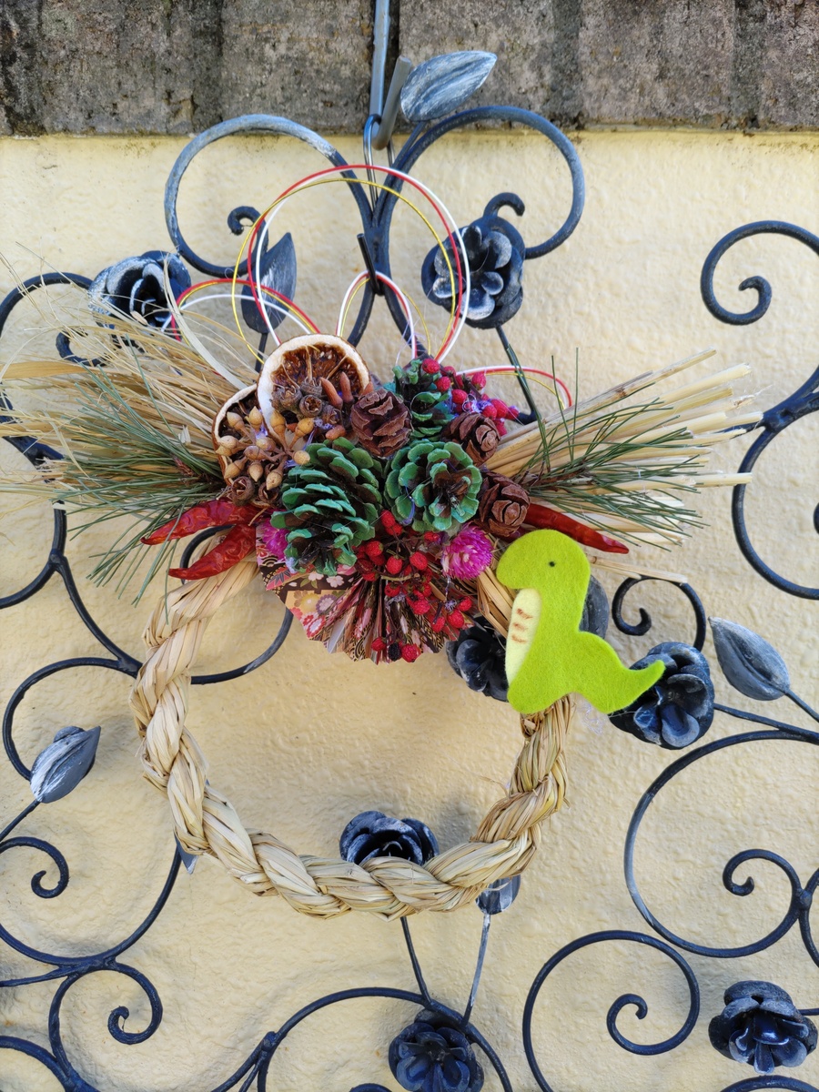 可愛いヘビさんがユニークで、お正月飾りを引き立てていますね😊
