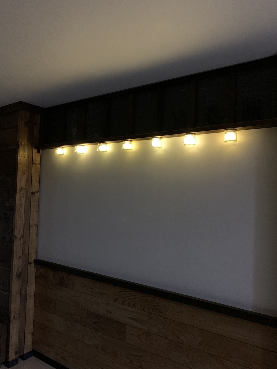 よくワインとかのビンを使ったものは見かけるのですが、天井付けをされたジャムビンライトは初めて見ました(*'▽')