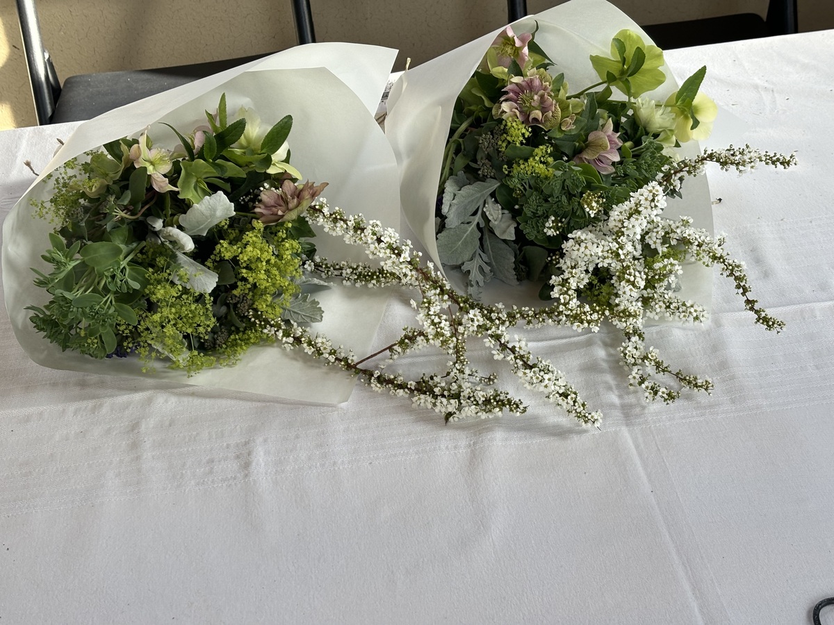 茎に濡らしたキッチンペーパーを巻き、ビニール袋に入れてまとめ、花束にしてお持ち帰り♪