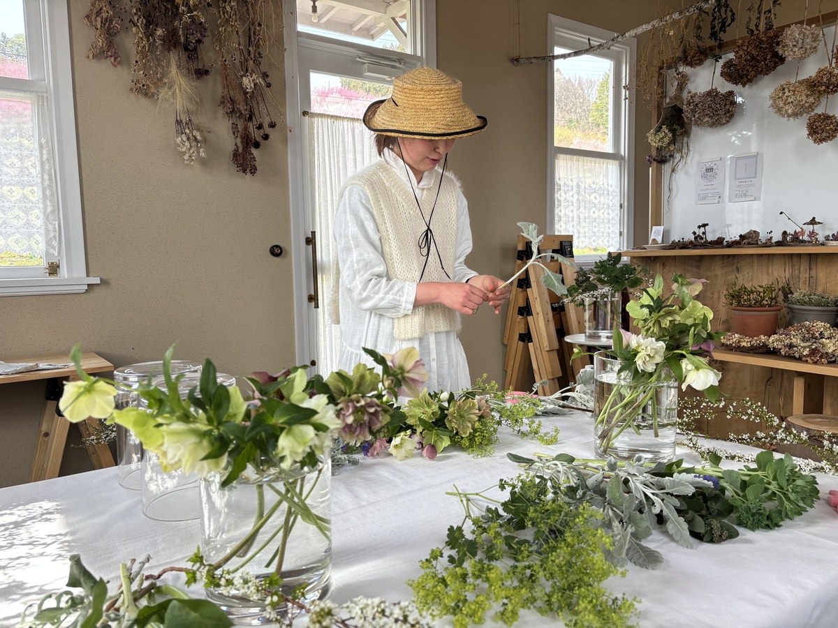 素敵な小屋の中で生花を愉しむ