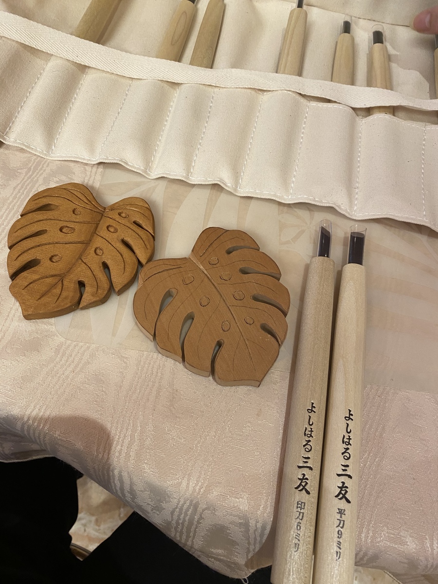 彫刻刀で、彫ったとは思えないモンステラの、完成度が凄いですね。