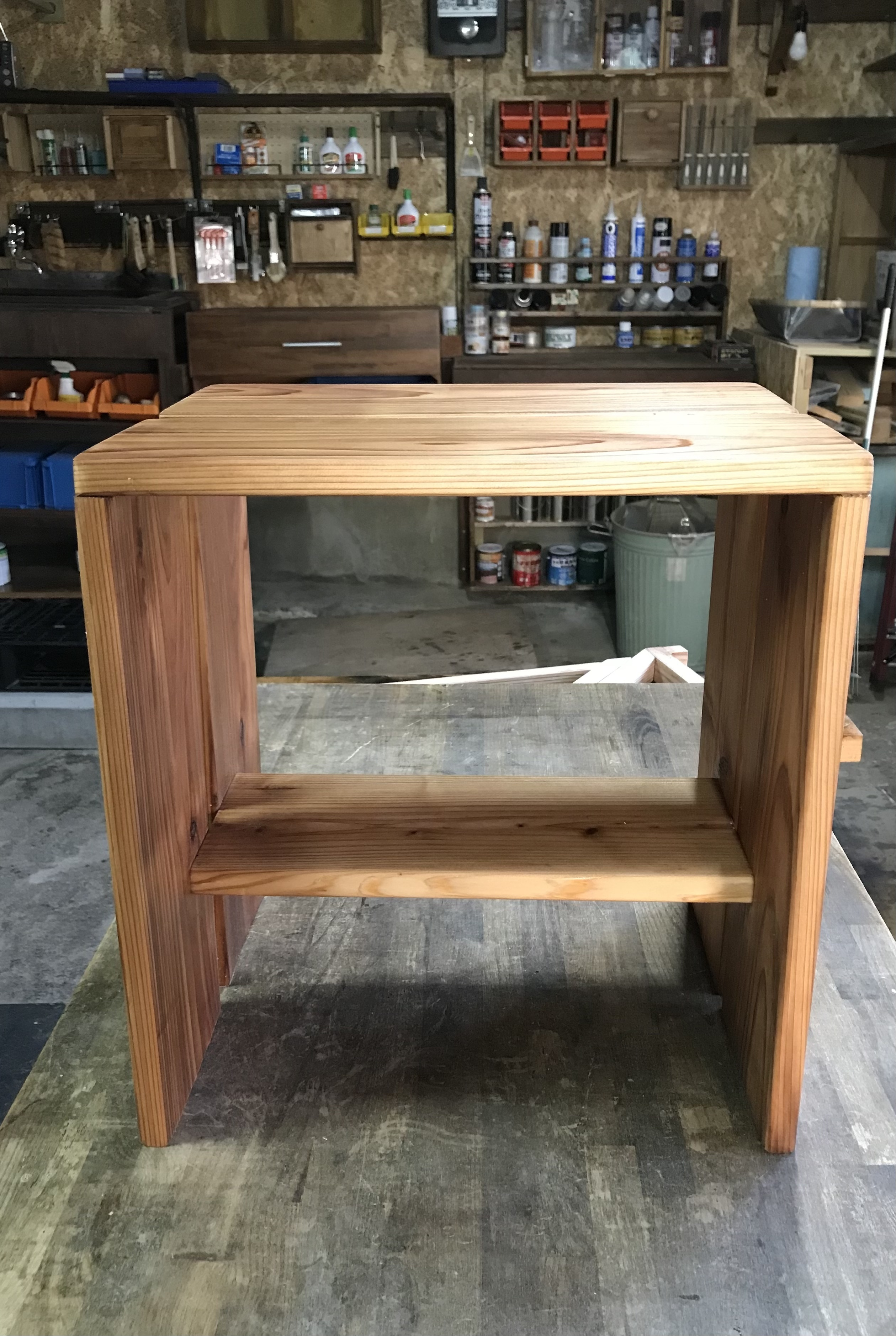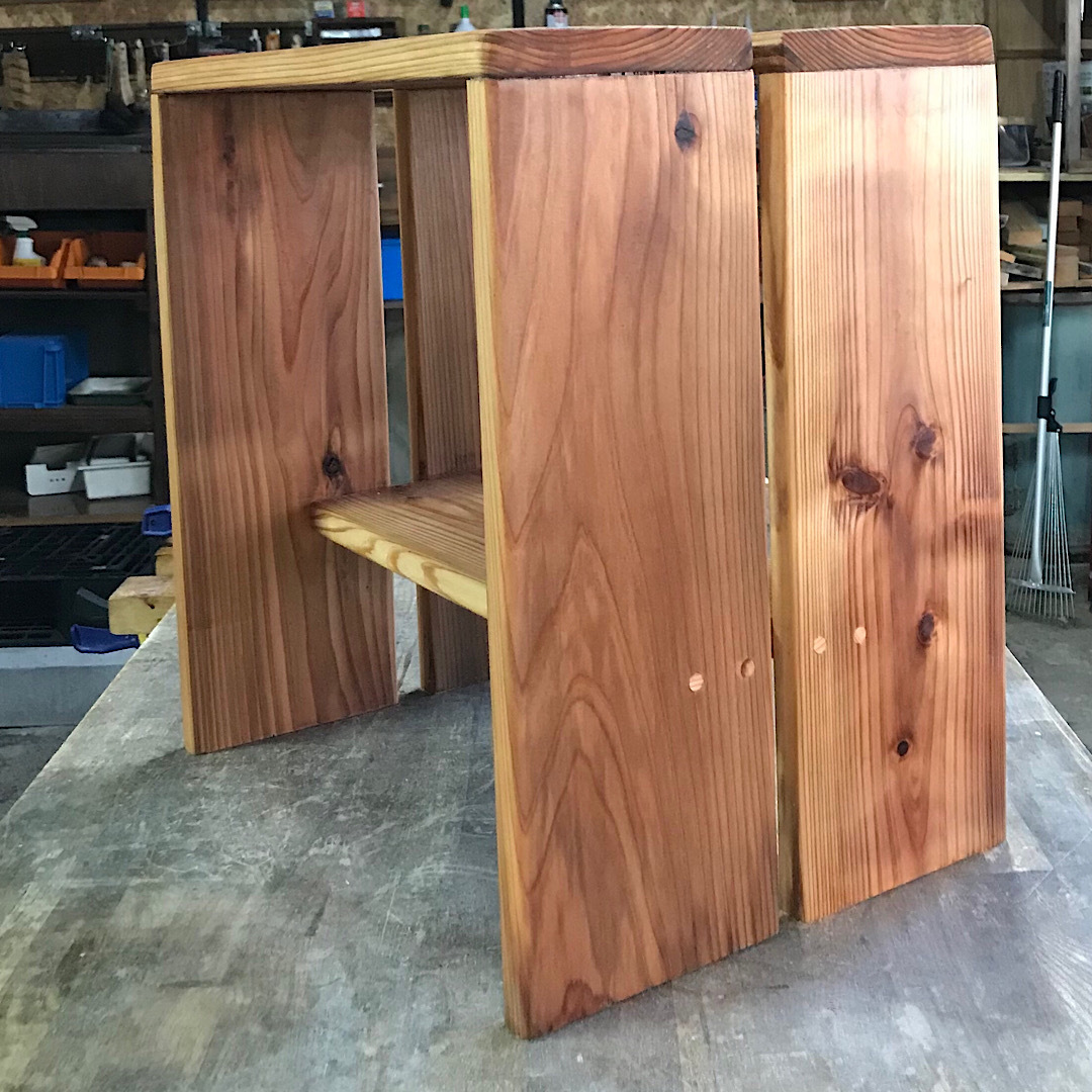 コチラも以前にカインズで赤札で買った杉材の長物を持って居りまして作業場で座るスツールを何か作れればな〜と思ってNETで『杉材スツール』『杉材椅子』などググッて居りましたら↓これイイなと思って、、、