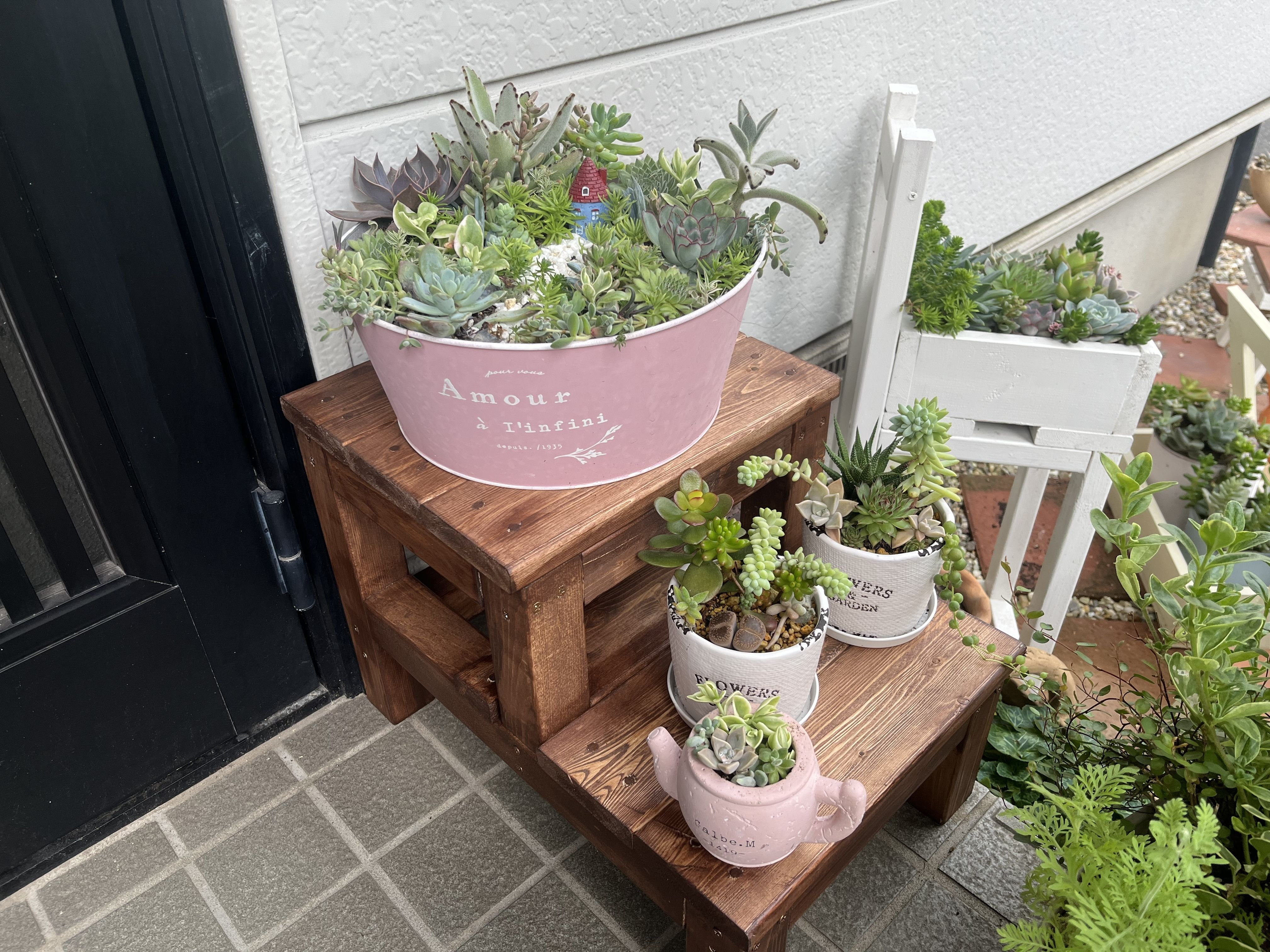 踏み台を多肉植物の鉢置きにするなんてナイスです👍