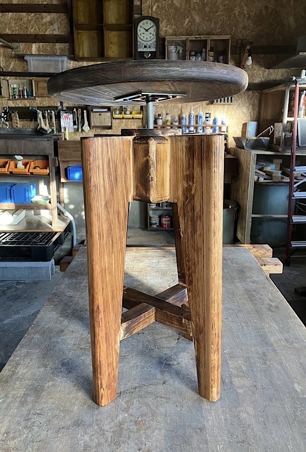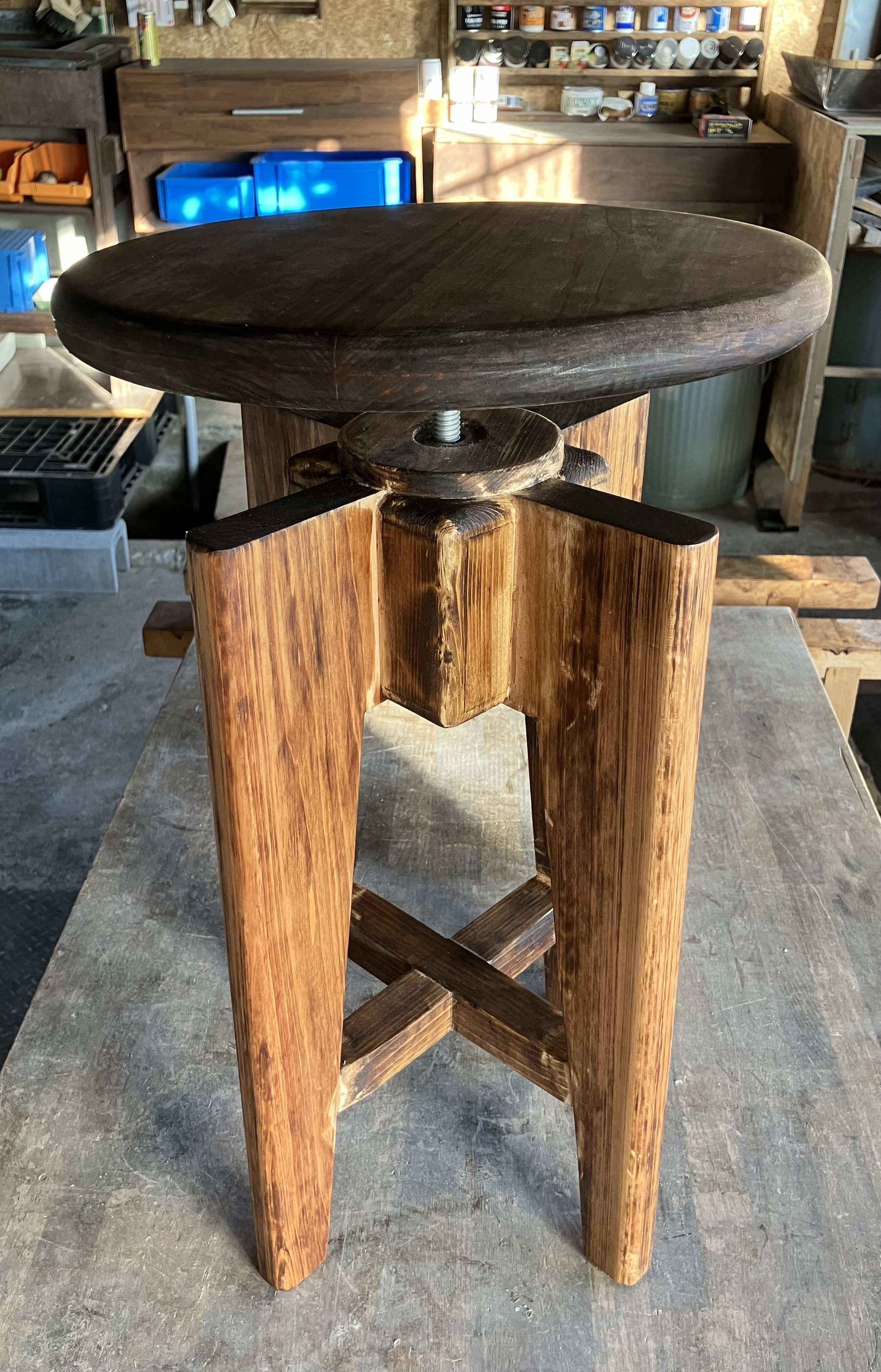 です、デス、過日ヤッテみた『高さ調整スツール』作りは一緒、材料は全て変えおりまする〜(^.^)❣️
