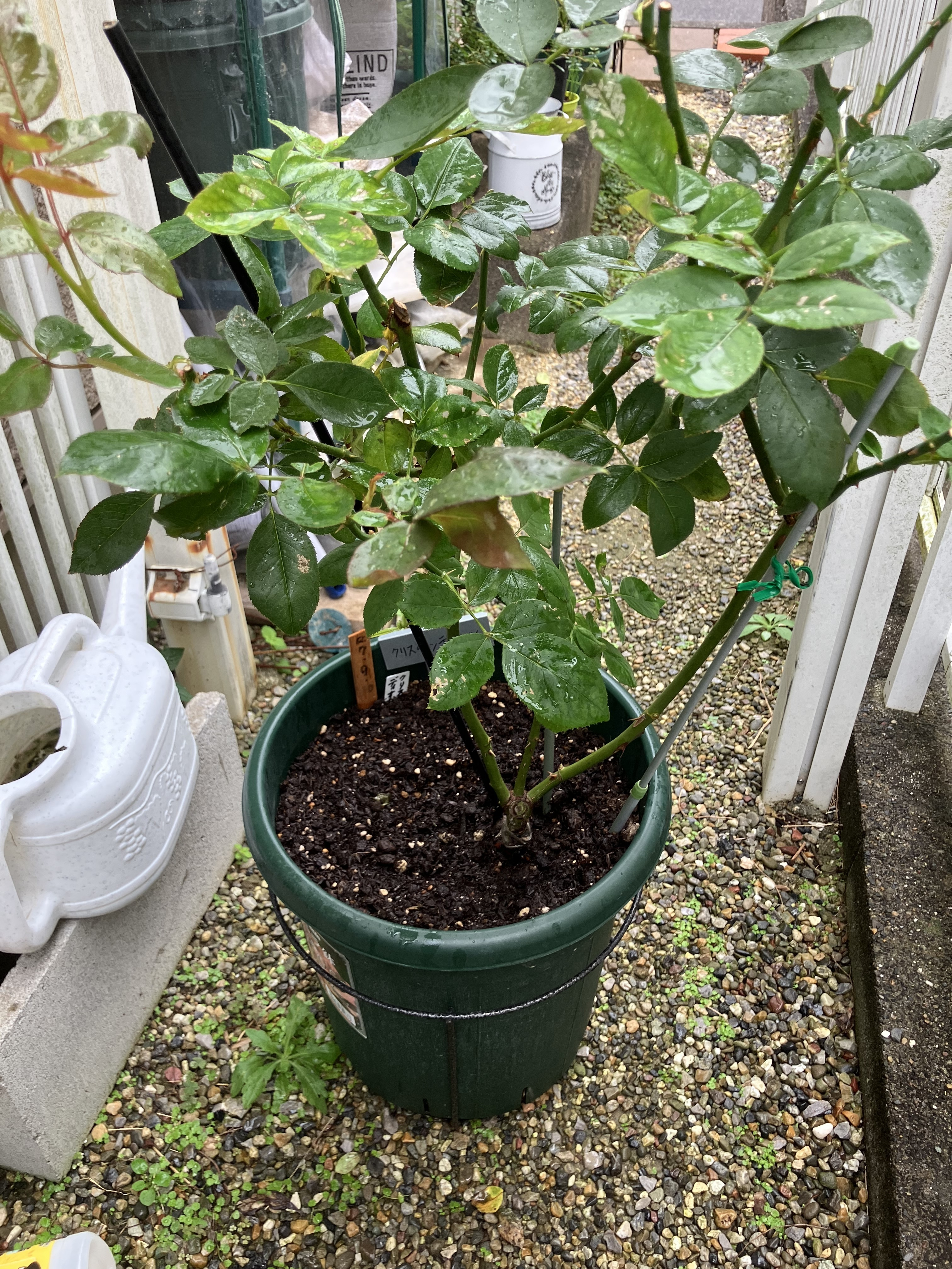 薫風薔薇園の講座に行き、3月にクリスチャンディオールの赤ちゃん苗をいただき、10月に咲かせて持ってきてと言われて春夏と鉢マシし、肥料や薬、ピンチ剪定を繰り返し育てたけれど、だがしかし、花は咲かせられなかった。土曜日に鉢を薫風薔薇園まで持ち込み、花は咲かせられなくすみませんと社長に謝罪しました。社長も薔薇園の薔薇が天候不順と虫にやられて花が少ないと。今年の夏は薔薇には過酷。