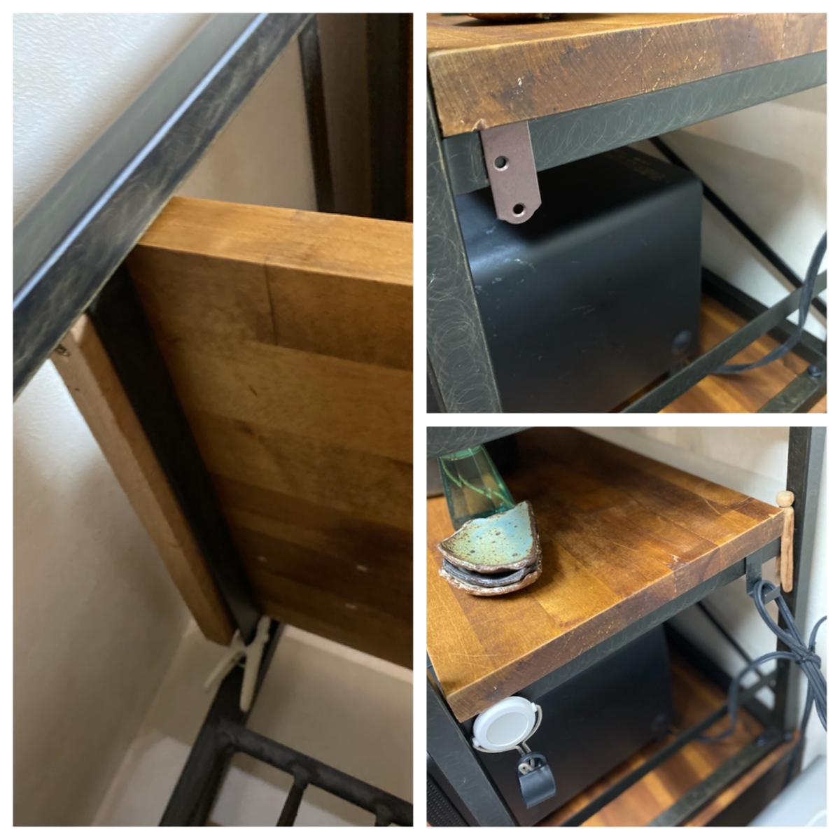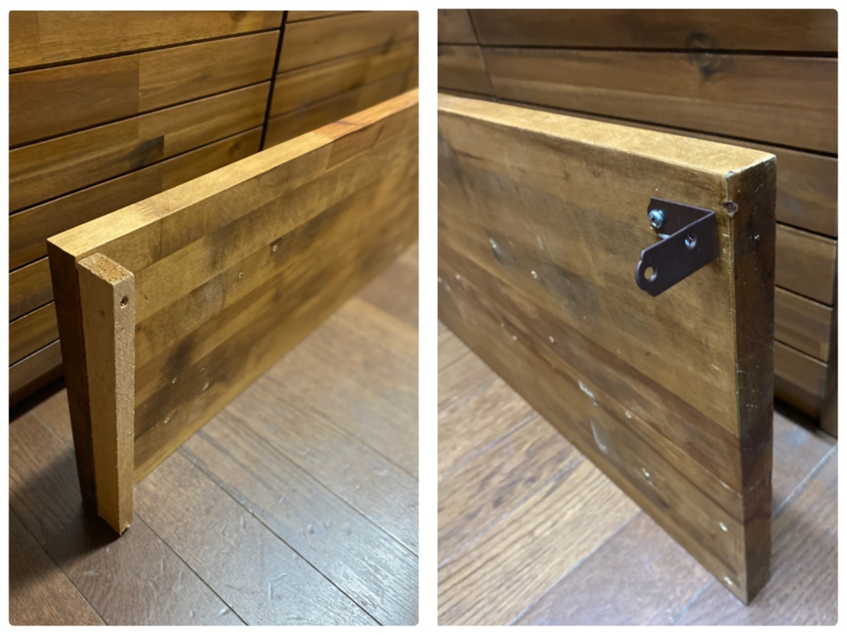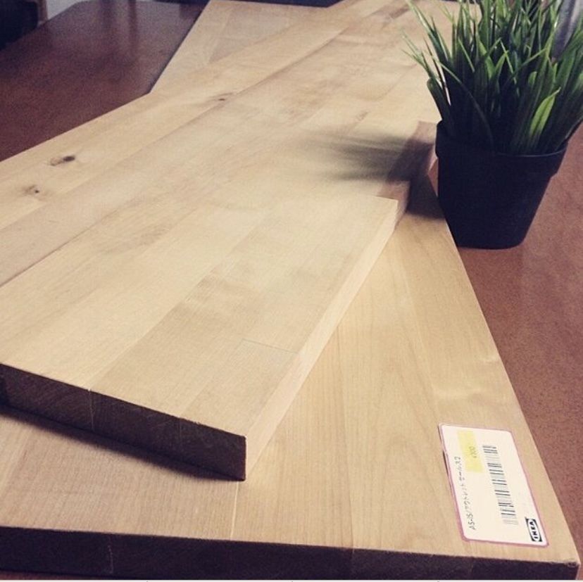 以前テーブルをDIYしたときに天板として使っていた板を再利用して棚板をプラスしました。