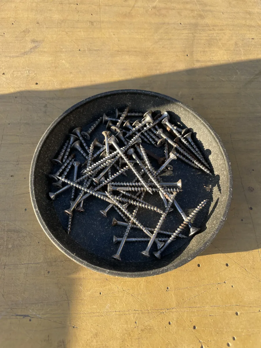 サンダー掛け中、すのこ材を留めてるビスが浮いてしまう状態が見られ、これはビス留めが効いてなく、ビス穴にサビが発生して(水の影響と思われます)る状況で、25㍉だったビスを32㍉に変更して解決しました。