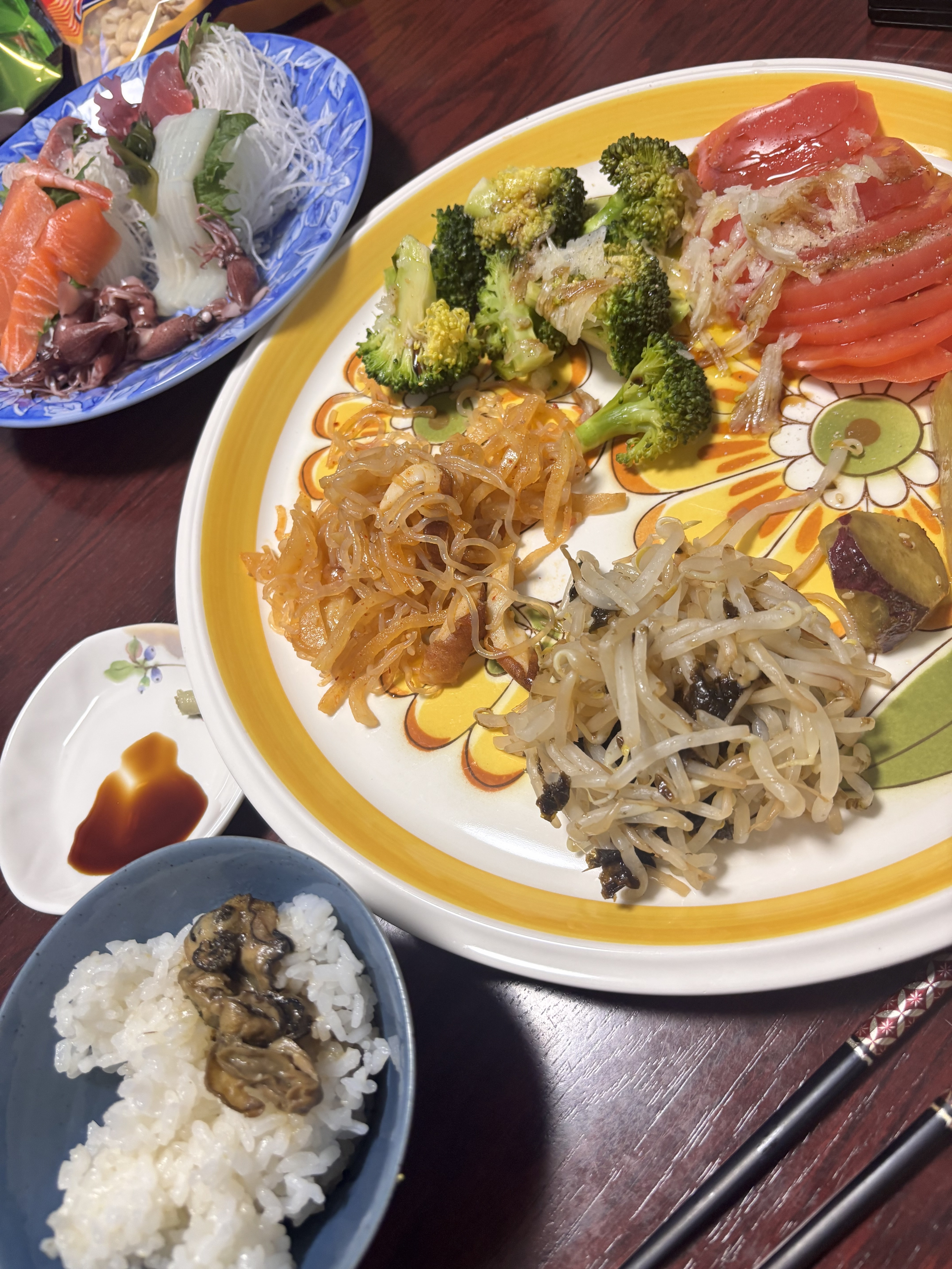 トップ > クッキング > 料理 > 二人きりの夕飯 マリーモミ 2026/02/15 22:26 二人きりの夕飯 ブランチと同じ昭和レトロのお皿使用。 乗っているのも少し同じかですがご飯にのかっているのは小さいですが牡蠣のバター醤油🦪 トマトサラダはお酢、玉ねぎスライス、塩胡椒オリーブ油にバサミコスをサラッとかけて簡単ですが旨しです💕 もやしのポン酢醤油和えに焼き海苔。 シラタキと大根、竹輪の豆板醤炒め。 いいね 共有する 共有する X LINE リンクをコピー コメントする 0 件の返信 (新着順)