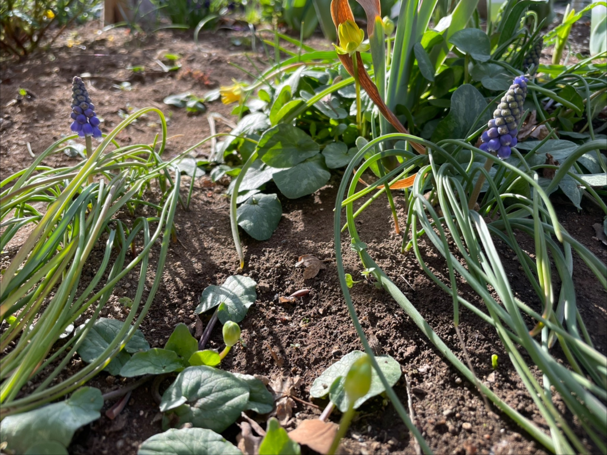 うちも ムスカリがあるのですが、放ったらかしにしていたら 葉がワサワサになり😅、昨日 そのワサワサを なるべく陽が当たるように‥と、髪の毛をたくし上げるようにしてあげてたら 小さなムスカリが生えてきてました💕 ソラさんの投稿写真の様には まだ色づいて無いのですが これから育ってくれるのが楽しみです💖