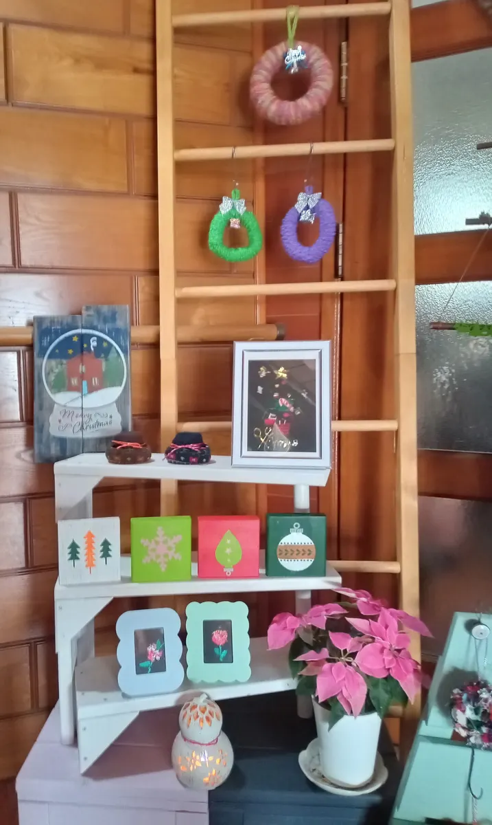 ■工夫ポイント置台などの色が被らないように作りました。リースなどが映える色に塗り分け飾り付けも色とりどりで素敵に…