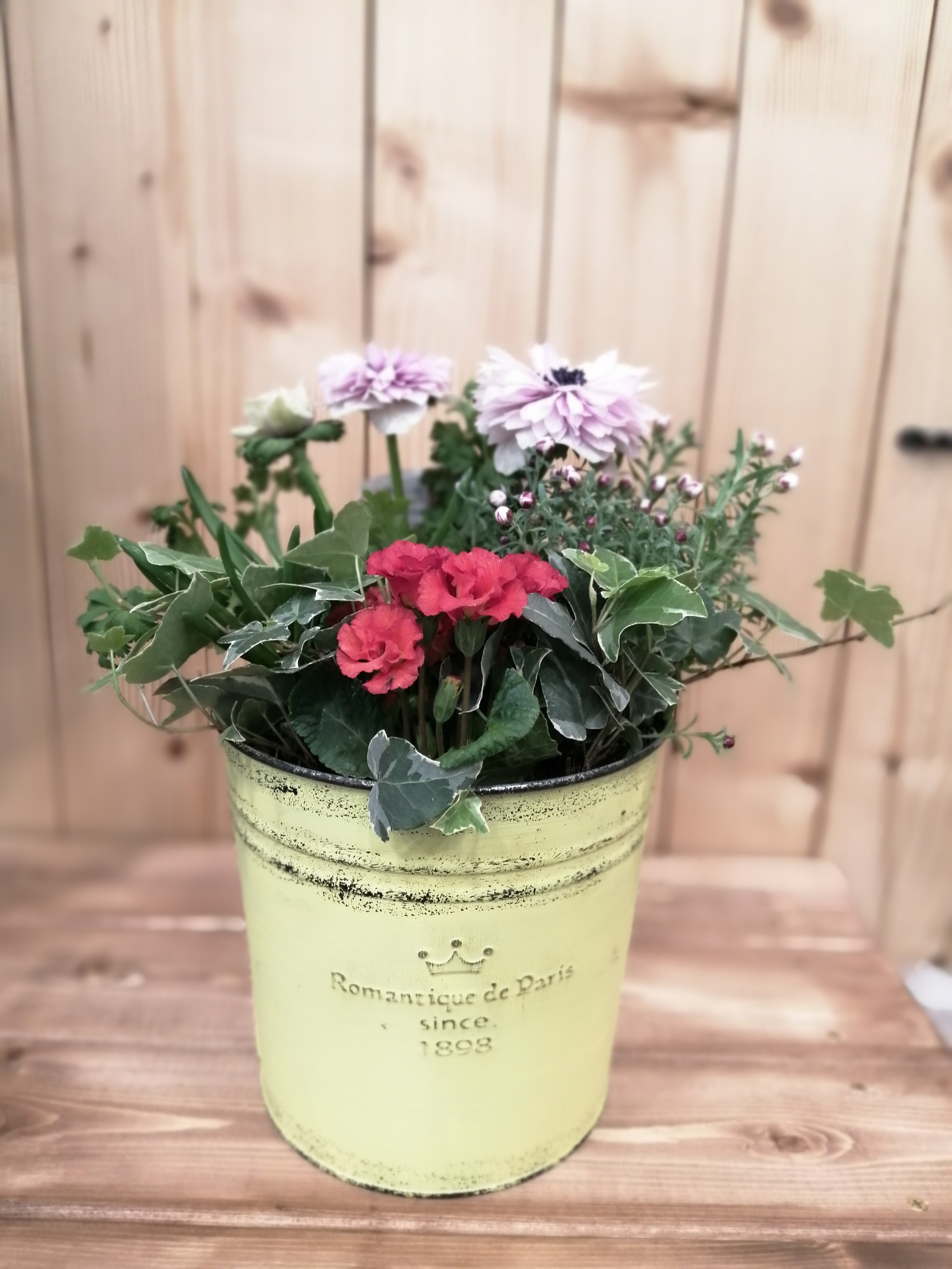 投稿を表示春らしいお花とブリキの鉢がマッチしていて、とても可愛いですね💐