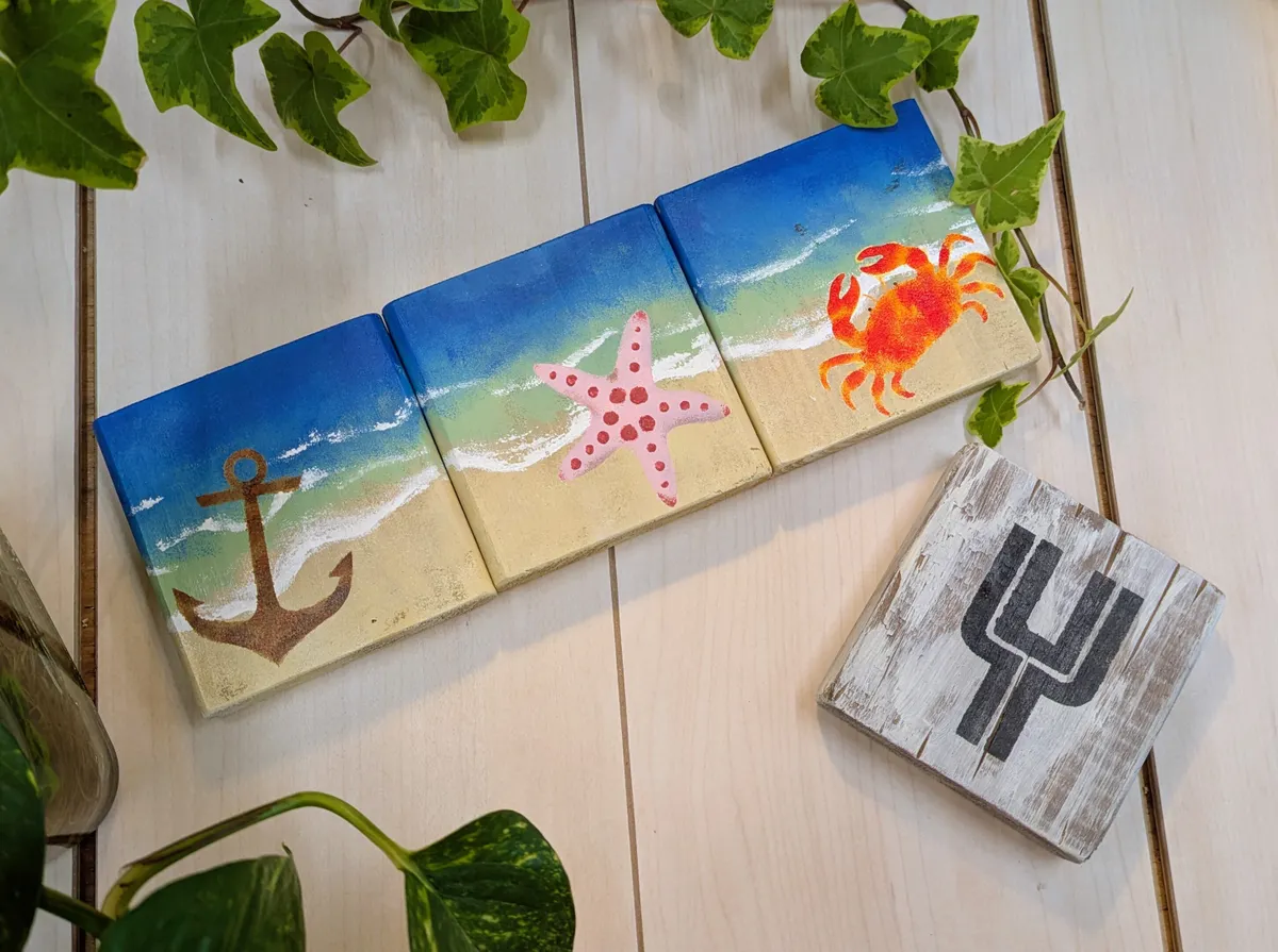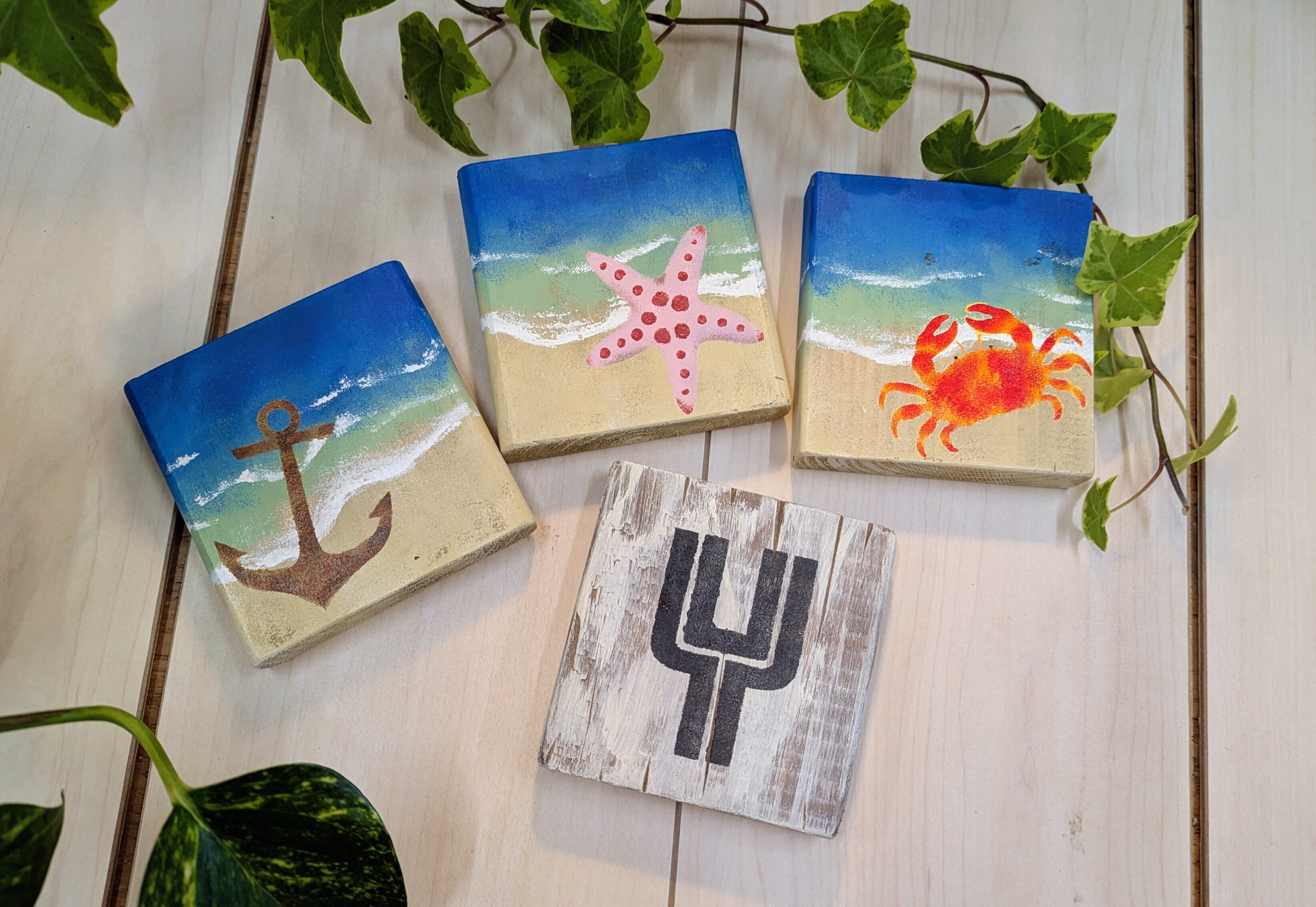 トップ > ワークショップ > 小物・雑貨 > ステンシルコースター🌊 ゆり 2026/02/20 13:18 ステンシルコースター🌊 久しぶりにBBのステンシルコースターを作りました‼️ 海のイメージで作りたかったので、カニ・ヒトデ・錨と、イニシャルを選びました🦀⭐️⚓️🌊 イニシャルのはビーチコーミングで拾ったような朽ちた木片風にしたくてダメージをガンバりました‼️ 錨⚓️もサビ風にステンシルをしてみましたが、難しい😵💦 海は並べた時に繋がるように絵合わせをしてみました✨ この海の塗り方で、今度はタイニーからの大きめのボードへと、ステップアップしていきたいと思ってます。 アドバイザーさん、お世話になりました😌 いいね 共有する 共有する X LINE リンクをコピー コメントする 12 件の返信 (新着順) ミュートしたユーザーの投稿です。 投稿を表示 sinnonn1109 2026/02/21 17:51 海の波が素敵。 コースターですか? すごい😍😍😍 いいね 返信する ミュートしたユーザーの投稿です。 投稿を表示 ゆり 2026/02/22 08:07 sinnonn1109 ありがとうございます✨ 白波、1番緊張したところです🌊💦 完成して「海だ‼️」とつい喜んじゃいました😁 いいね 返信する ミュートしたユーザーの投稿です。 投稿を表示 sinnonn1109 2026/02/22 15:16 ゆり うん、海だ〜! 気持ちがわかります。 素敵な海だから。😆 いいね 返信する ミュートしたユーザーの投稿です。 投稿を表示 わいず 2026/02/21 14:13 波レジンの様な作品で、とっても素敵です。 波音が聞こえて来そう〜✨ いいね 返信する ミュートしたユーザーの投稿です。 投稿を表示 ゆり 2026/02/22 07:54 わいず 波レジン憧れなんですが、ちょっと手が出ないのでこちらで表現してみました🌊✨ 嬉しいコメントありがとうございます😆‼️ いいね 返信する ミュートしたユーザーの投稿です。 投稿を表示 パール 2026/02/21 12:32 3枚繋げると1枚の絵のようでとても素敵ですね😊🎶 いいね 返信する ミュートしたユーザーの投稿です。 投稿を表示 ゆり 2026/02/22 07:49 パール ありがとうございます✨ 小さめな作品ですが、繋げたら世界観が広がる感じが出てでよかったです😆‼️ いいね 返信する ミュートしたユーザーの投稿です。 投稿を表示 ちーず 2026/02/21 07:39 すごーい❣️ お上手過ぎて、オリジナル感満載で、ステンシルコースターとは思えない作品✨ カニとヒトデは手書き? 才能が羨ましすぎる😆 いいね 返信する ミュートしたユーザーの投稿です。 投稿を表示 はっちゃん 2026/02/21 11:08 ちーず 可愛い いいね 返信する ミュートしたユーザーの投稿です。 投稿を表示 ゆり 2026/02/22 07:47 ちーず ありがとうございます✨ カニとヒトデはステンシルシートです😊 カニは3色使ってグラデーションを付けてみました🦀 ヒトデは綿棒で点々を付けています⭐️ ステンシルをする時は、イメージに合う画像を見ながらやってるので、そのおかげかしら😊 いいね 返信する ミュートしたユーザーの投稿です。 投稿を表示 ぱんだ 2026/02/21 06:51 さすがー!やっぱりゆりさんだわ👏✨ 小物雑貨屋さんにある物と何も変わらない手仕事ですね💪 私もこんな風に作りたーーーい🤩 いいね 返信する ミュートしたユーザーの投稿です。 投稿を表示 ゆり 2026/02/22 07:38 ぱんだ ありがとうございます✨ 塗り方見本を見ながらガンバりました😆‼️ サインボードで海を塗りたくてチャレンジしてみたけど、結構スピード勝負な所があって大きいと難しいのかな💦 作ったら見てやってください😁 いいね 返信する ミュートしたユーザーの投稿です。 投稿を表示 Milk 2026/02/20 22:11 とっても素敵ですね✨ 海の波だったりが綺麗で、繋げると合うようになっててすごいです☺️ いいね 返信する ミュートしたユーザーの投稿です。 投稿を表示 ゆり 2026/02/22 07:23 ありがとうございます✨ 白波は一発勝負なのでドキドキしながらガンバりました😆‼️ いいね 返信する ミュートしたユーザーの投稿です。 投稿を表示 CHIE☆ 2026/02/20 20:57 海のグラデーションがとってもキレイですね😊 並べた時に繋がるのも素敵✨ いいね 返信する ミュートしたユーザーの投稿です。 投稿を表示 ゆり 2026/02/22 07:20 CHIE☆ ありがとうございます✨ 混ざる感じのグラデーションを今回初めてやりました‼️ うまく行ってよかったです😆✨ いいね 返信する ミュートしたユーザーの投稿です。 投稿を表示 きき 2026/02/20 19:43 わ〜🌊の感じで素敵🤗3枚並べると絵になるのも凄い🥰 コースターで練習するものいいよね🤗私は、絵心なくてダメだ🤣 いいね 返信する ミュートしたユーザーの投稿です。 投稿を表示 ゆり 2026/02/22 07:18 きき ありがとうございます✨ 私はつい同じ感じで4枚作ってしまうのですが、それぞれ別のやり方で塗ったりステンシルしたりと、大物を作る前に試したり練習したりできるのがいいですよね😆‼️ 絵心なくてもスポンジでポンポンしただけなので、できるんじゃないかなぁ🤔 今度ぜひアドバイザーさんに教えてもらってく