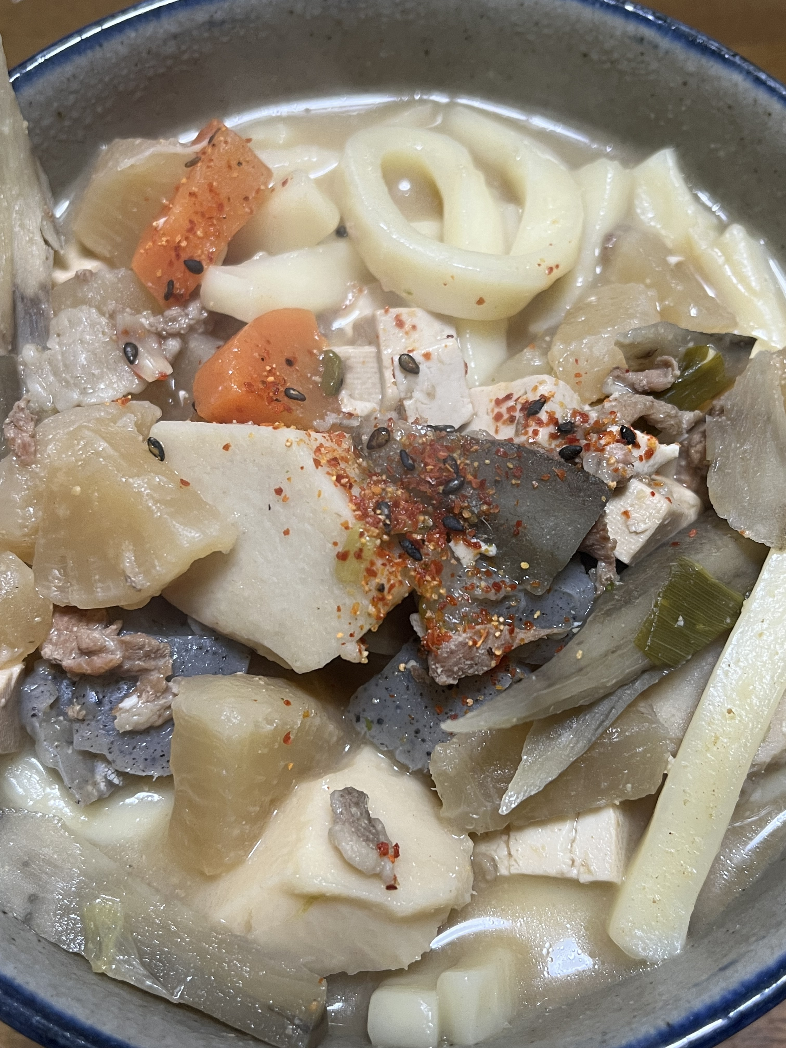 投稿を表示お野菜の旨みがしっかり出た美味しい豚汁で作るおうどんは美味しいですよね😋