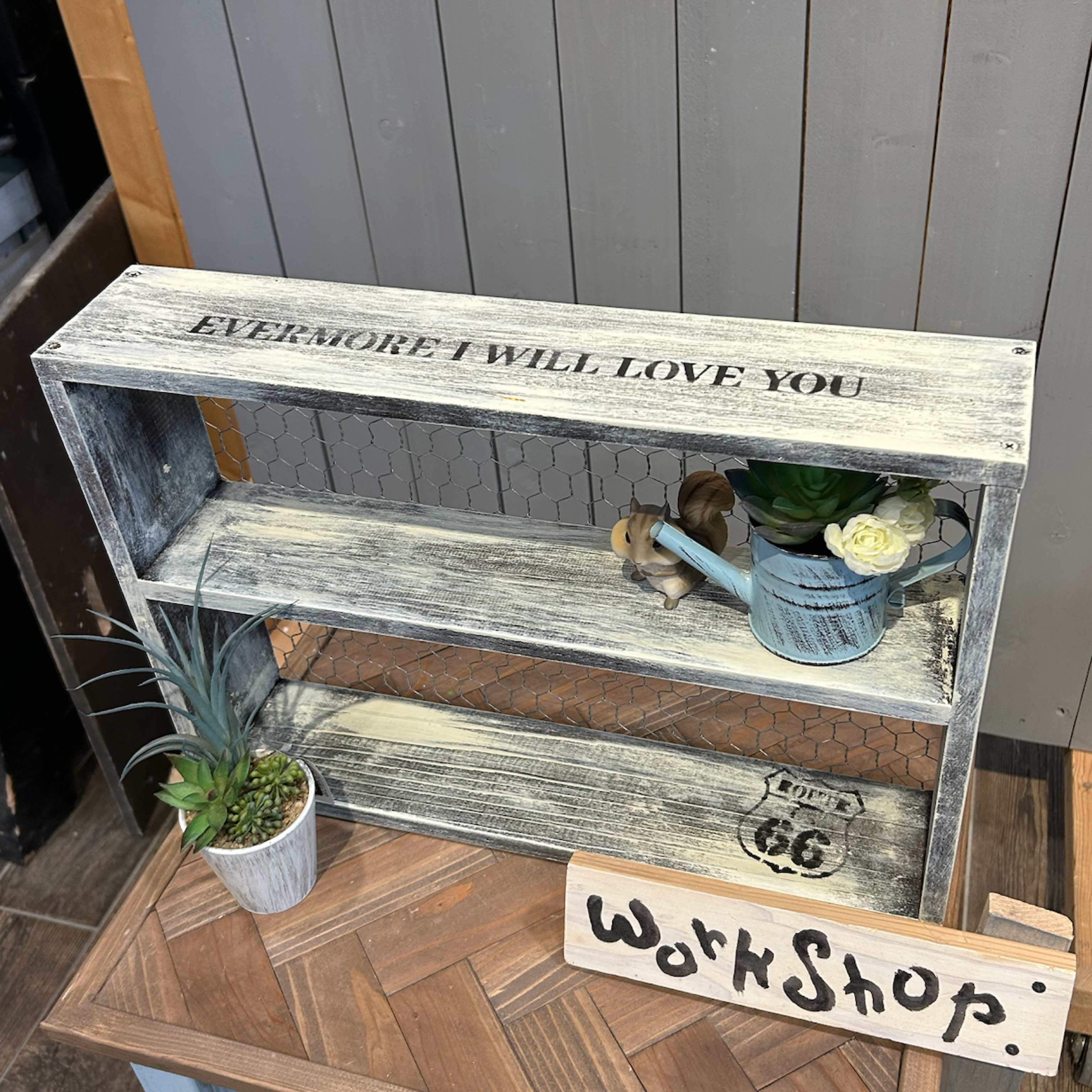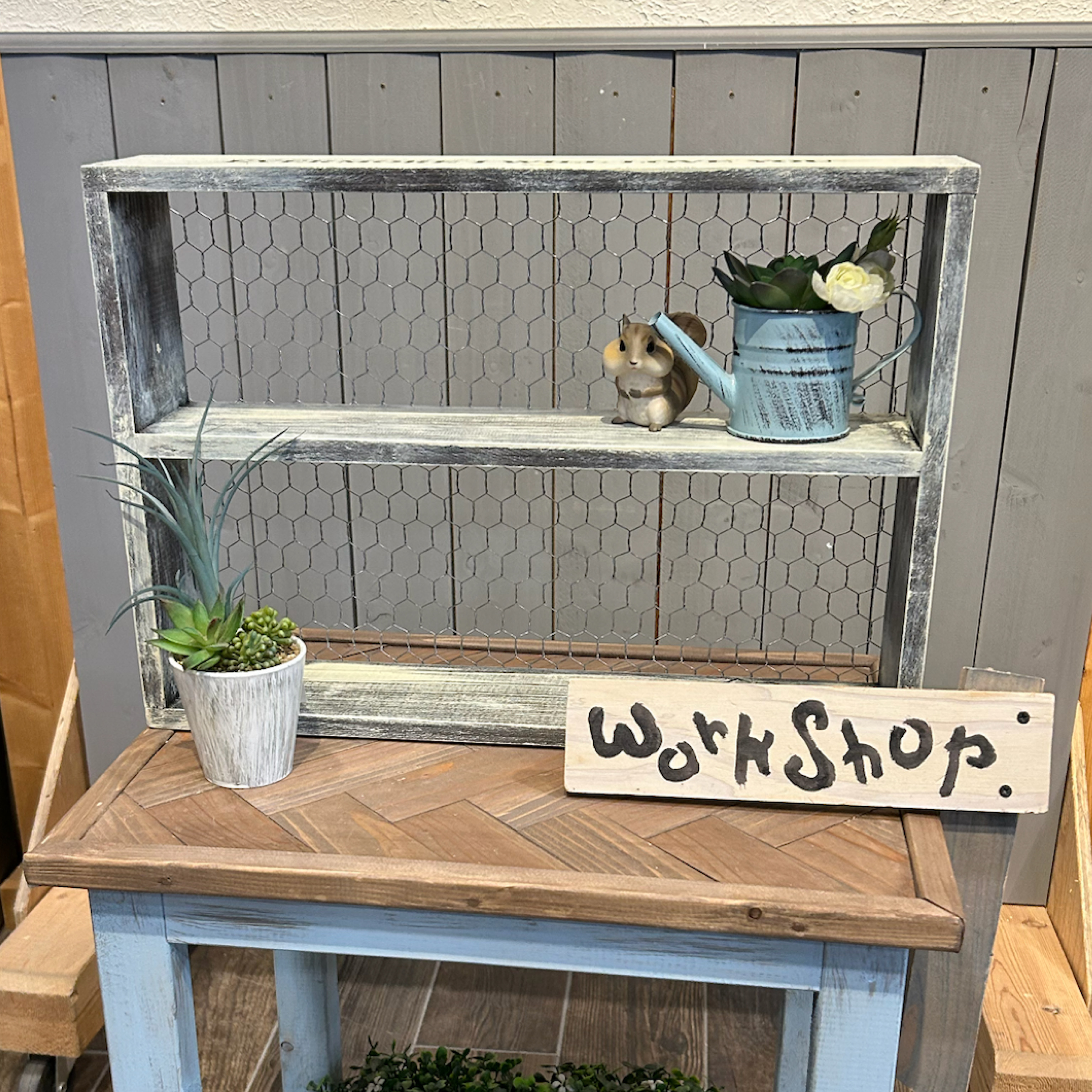 昨日、午前中は、チキンネットでアンティーク風ディスプレイ棚のワークショップに参加してきました♪
