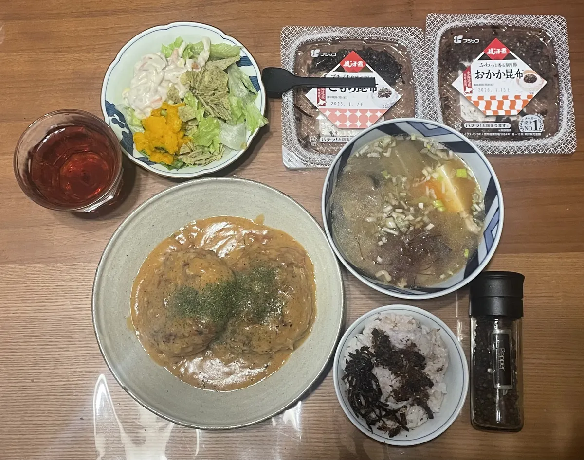 投稿を表示コッテリと煮込まれたハンバーグ、ルウが絡んで良きですね〜😁
