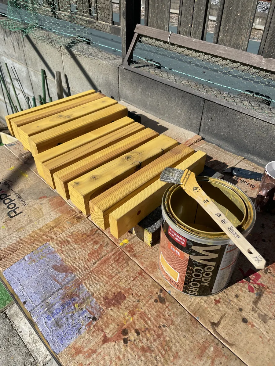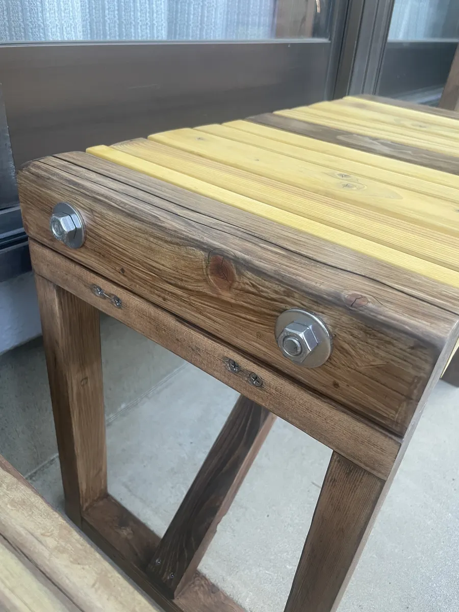 4年前に作成したベンチ(リンク→ https://diy-square.cainz.com/announcements/ym7pt7fzz5ywvixs )の塗装メンテを兼ねて、リペアしました。