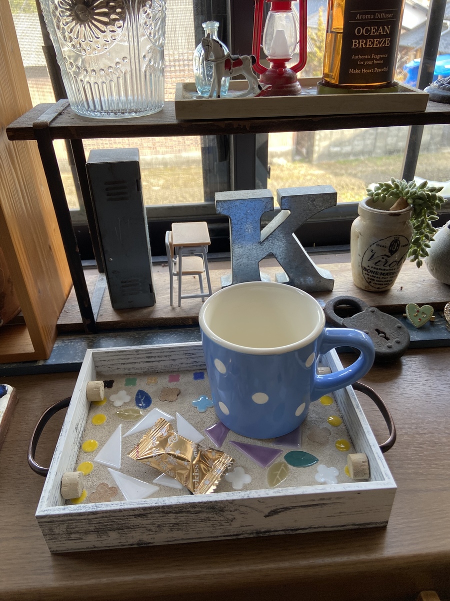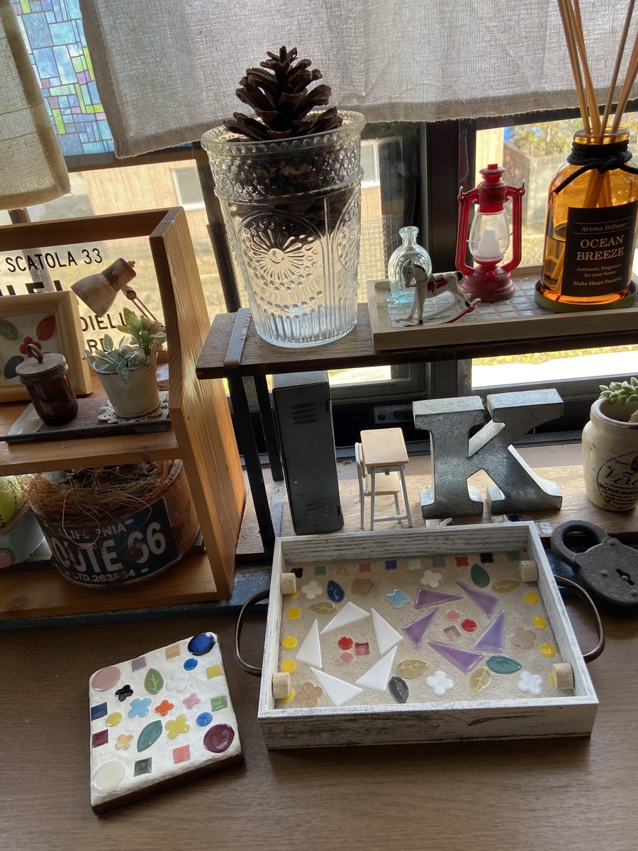 トップ > DIY > インテリア > プレゼントにバラタイルトレイ🌹作りました😌 かおるん 2023/02/08 15:46 プレゼントにバラタイルトレイ🌹作りました😌 お世話になった方のお引越し祝いに作りました♪素敵なお屋敷に住まわれるのでゴージャスだけど品のあるバラをタイルでデザインしました😉✨今は手に入りにくい三角タイルを合わせてバラに🌹、あとは丸、葉っぱ、花子タイルを組み合わせて華やかに〜🌈1人暮らしされるので、マグカップとお菓子を乗せて1人☕️タイムを楽しんでいただけるように😃✨トレイとしてもマグ2個は運べます✨セリアのシャビーな箱に取っ手を付けました。😺内側にネジが出てしまうので木で安全にカバーしました。 いいね 共有する 共有する X LINE リンクをコピー コメントする 0 件の返信 (新着順)