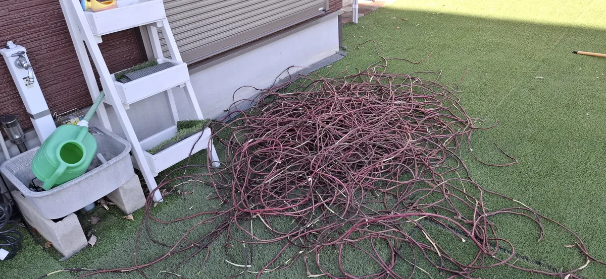 刈り取ったつるは、はっぱと分けて再利用する予定です😁💕