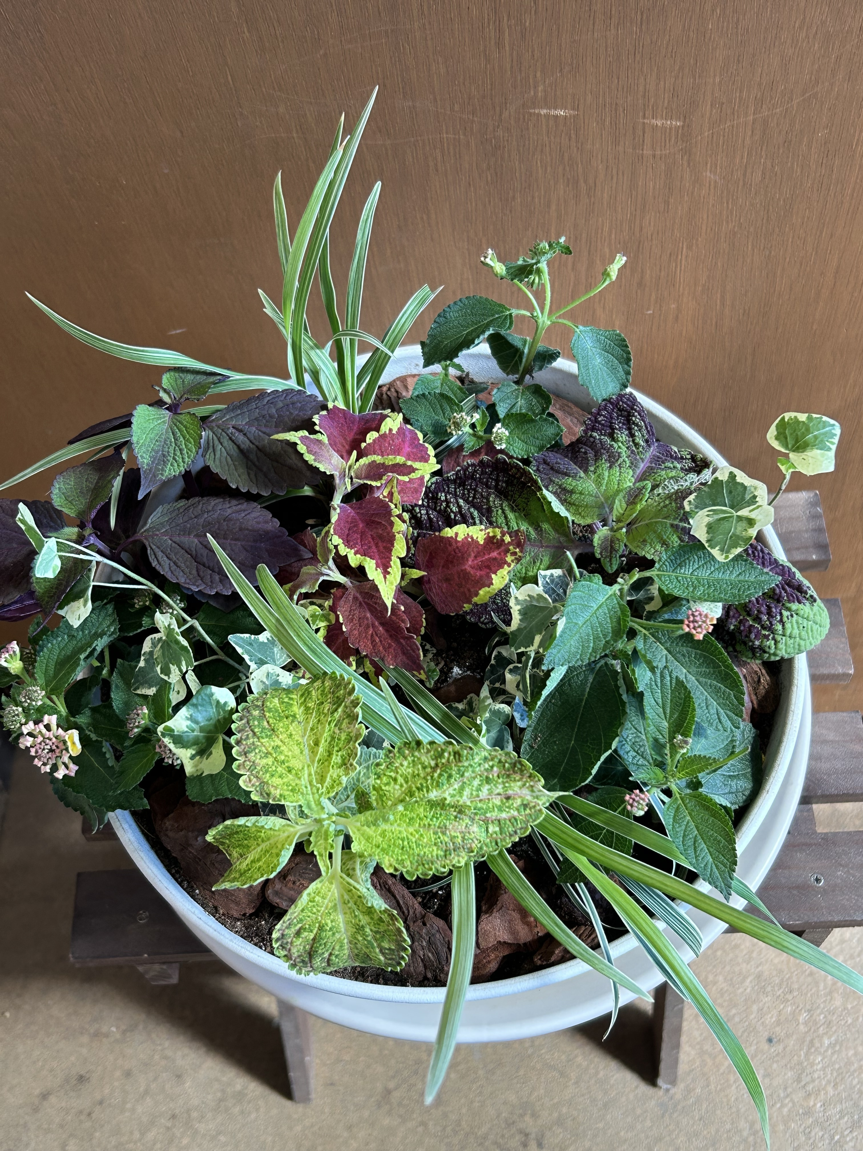 コリウス4株,ランタナ3株にヘデラ(カノン)とスノードラゴンを植え込みました。