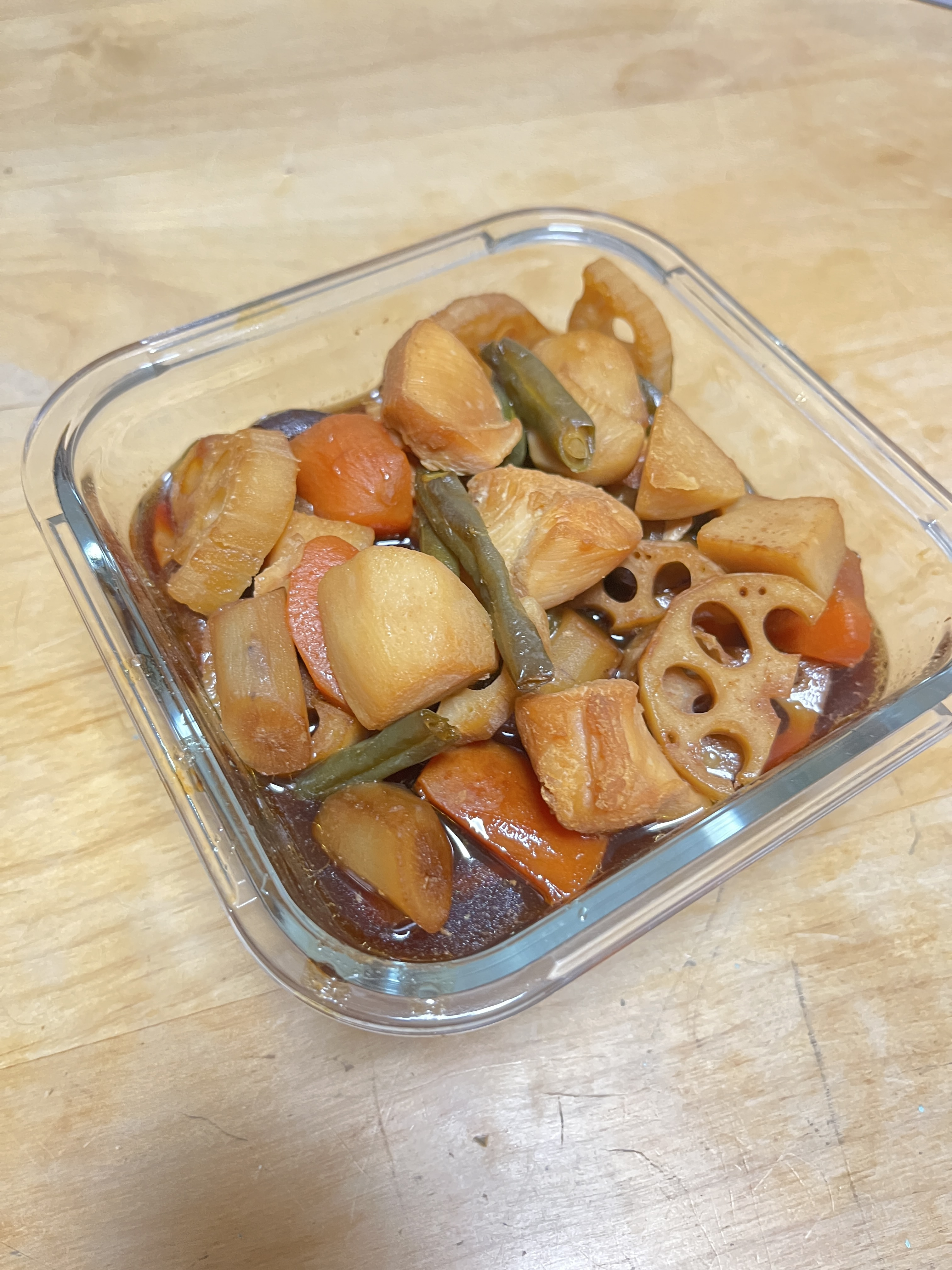トップ > クッキング > 料理 > 筑前煮🥕 まるちゃん 2025/12/04 20:31 筑前煮🥕 今日のおかず·͜· ꕤ︎︎ 久しぶりに筑前煮作りました*°♡ 冷凍の和風煮物野菜ミックスを使いました😅 九州醤油なので濃い色ですが少し甘めです🤭💕 まるちゃんcooking 筑前煮 冷凍野菜 いいね 共有する 共有する X LINE リンクをコピー コメントする 1 件の返信 (新着順) ミュートしたユーザーの投稿です。 投稿を表示 べるん 2025/12/06 18:57 冷凍の和風煮物野菜ミックスは、種類も豊富で美味しそうですね😋 いいね 返信する