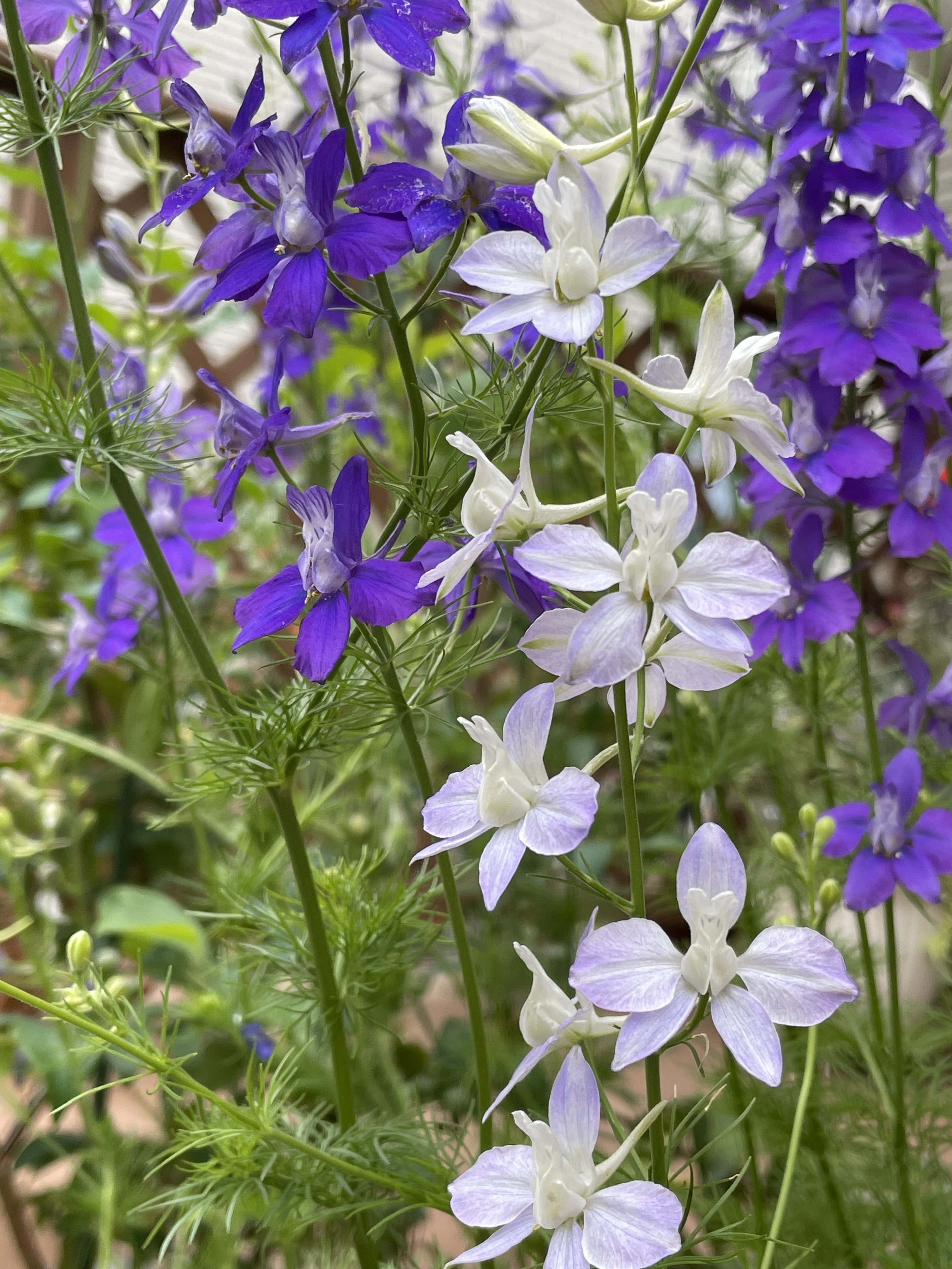 紫色の方が多いけど、その中で、薄紫色の千鳥草が、頑張ってます👍この淡い色がなんとも優しい感じで、好きです✌️
