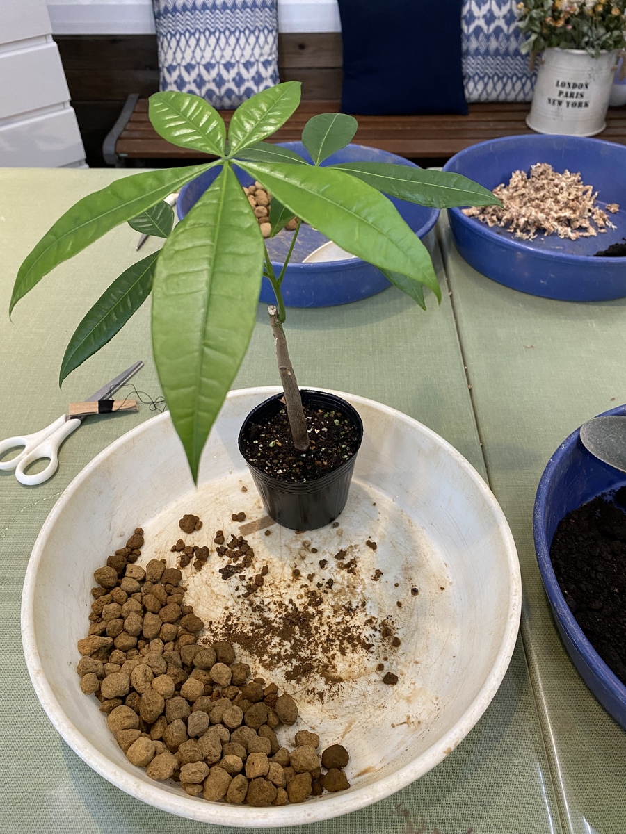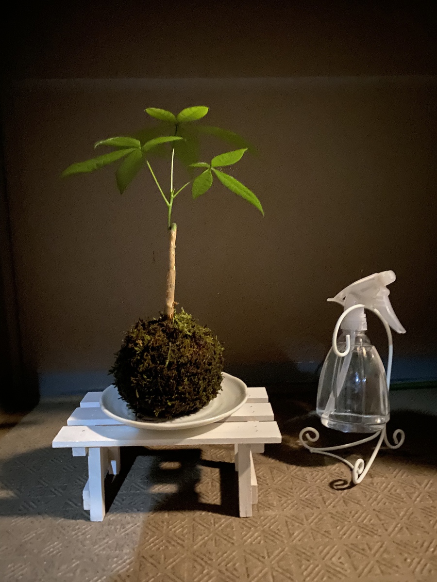 パキラは苔玉を両手で持って、軽くなったら水を張った容器にどぷんと浸からせます。😊
