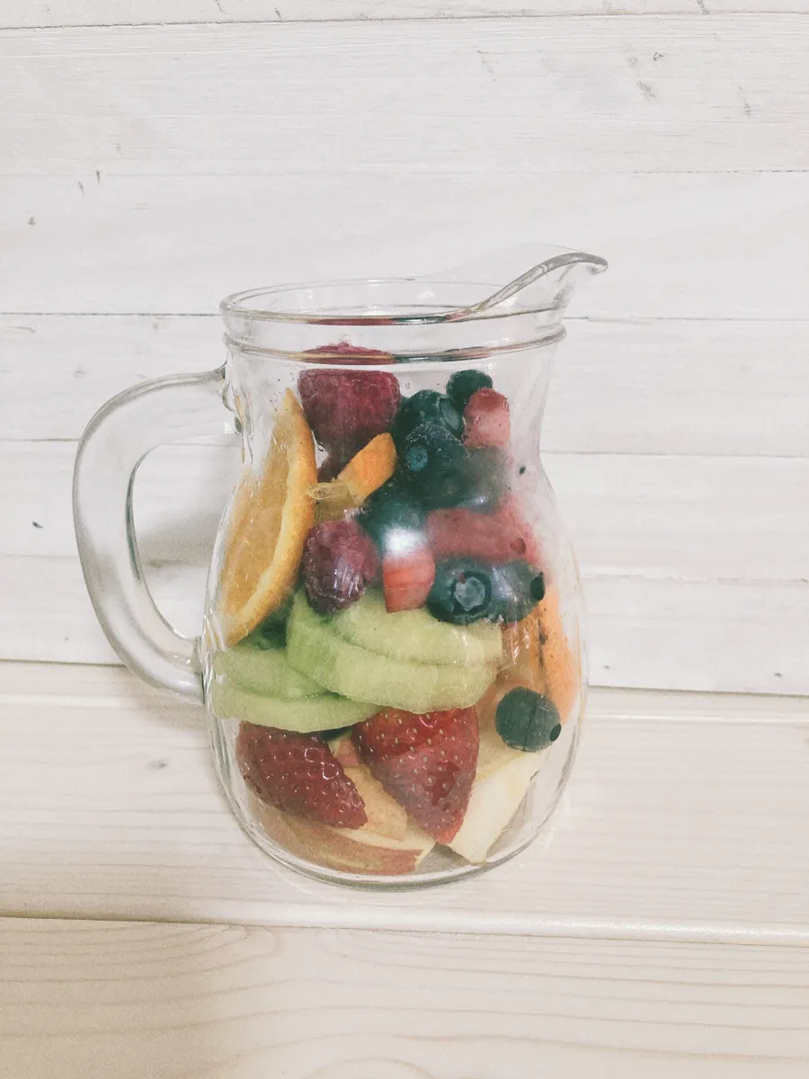 ①好きなフルーツをカットしピッチャーなどガラス容器に入れる