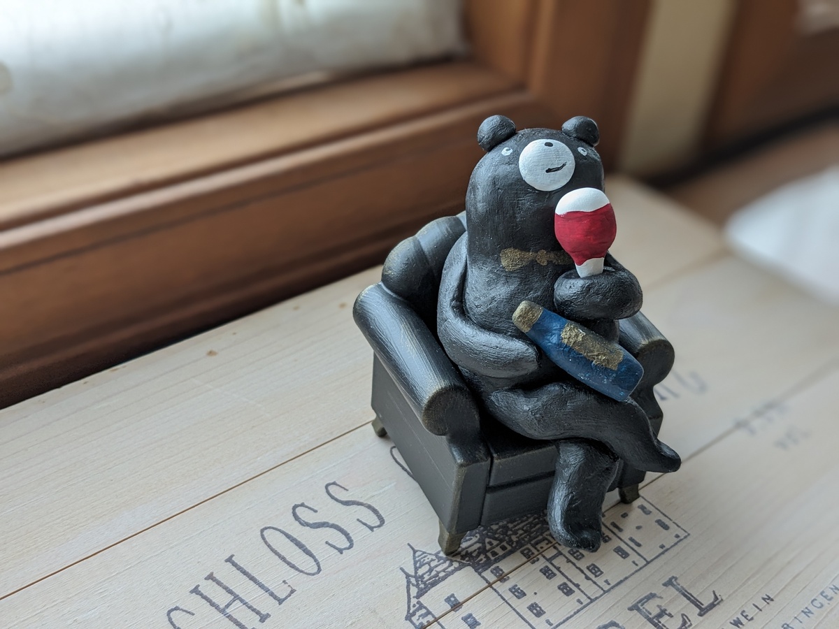 クマちゃん🐻ワイン🍷持ってマッタリしてますね❣️