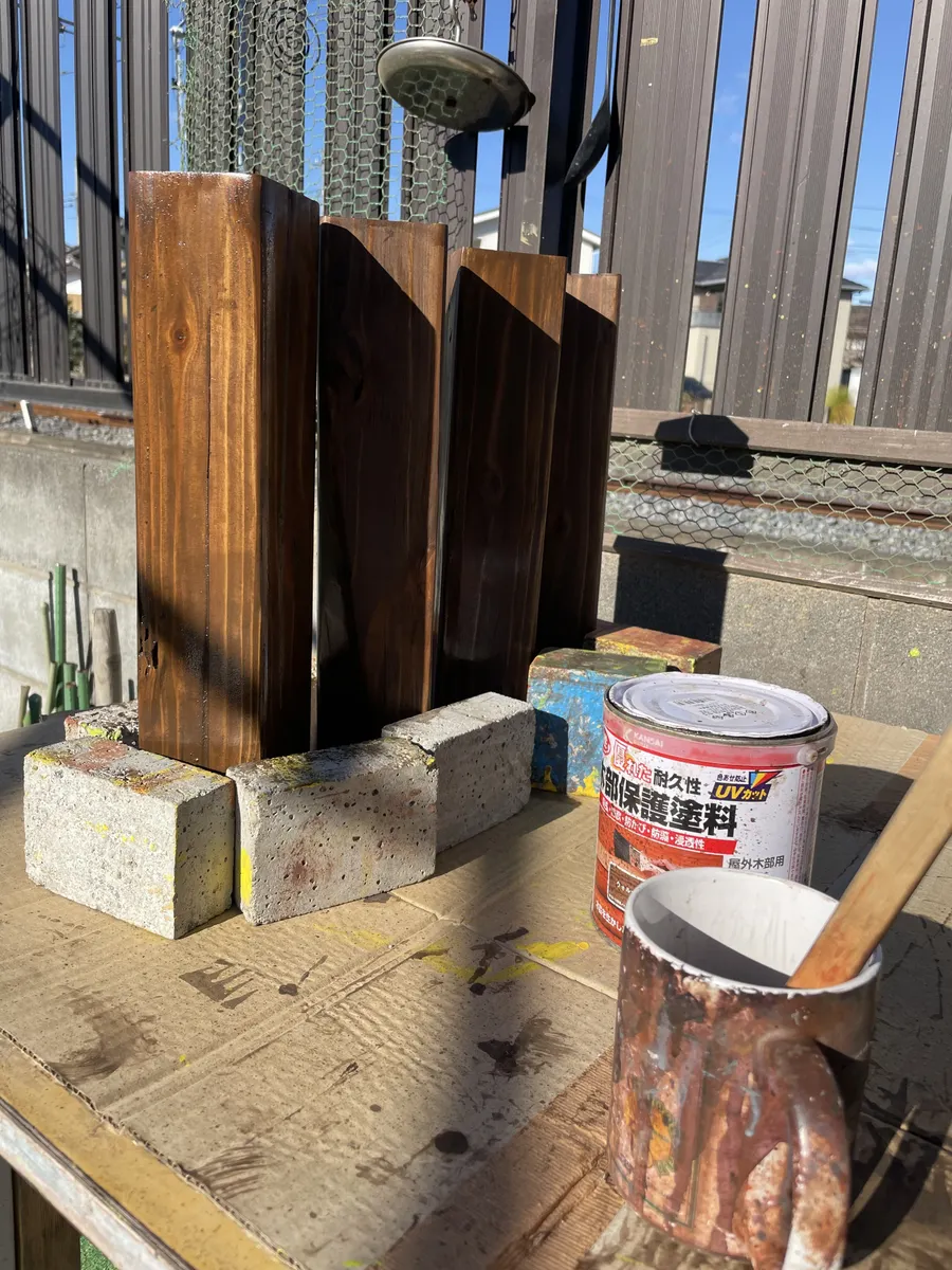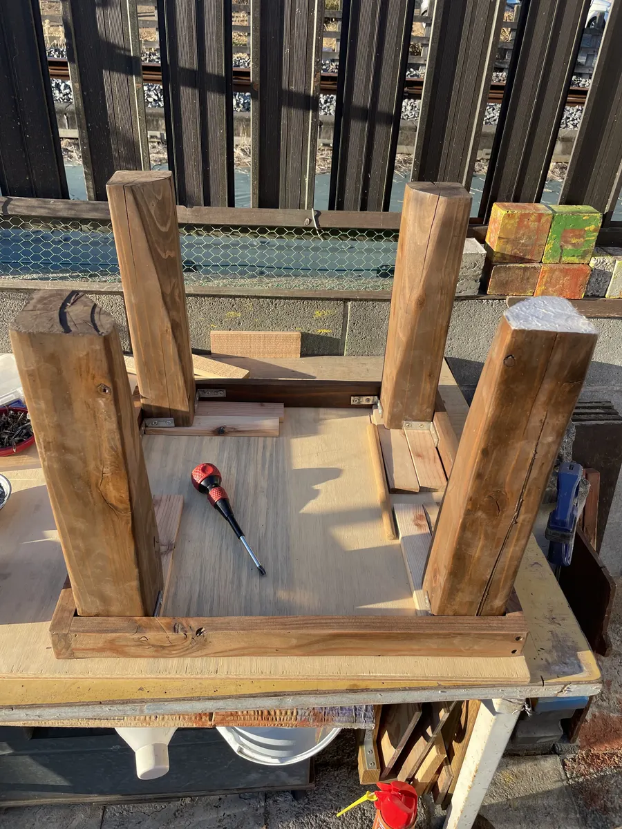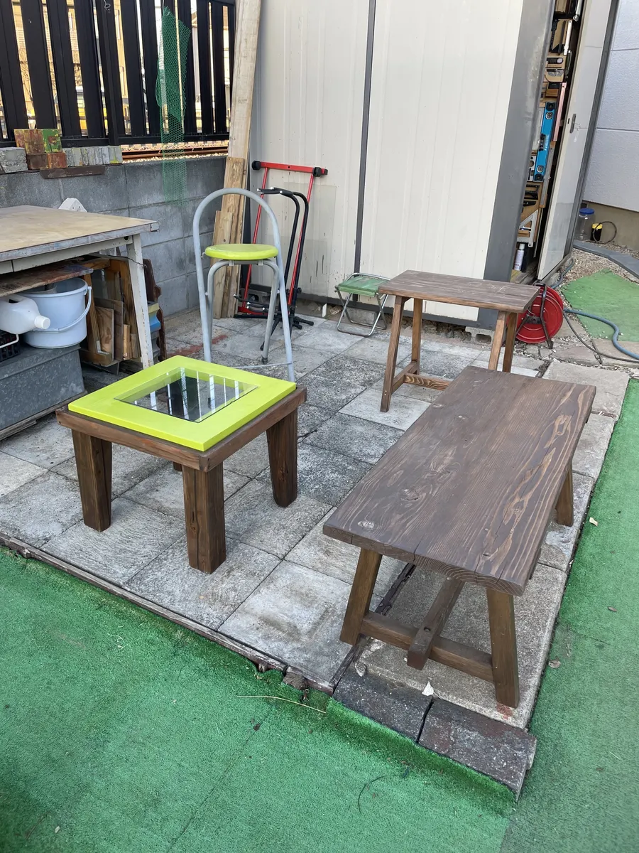 これで、ベンチ2脚、カウンターチェアで囲んだら、4人でお茶ができますね。↓