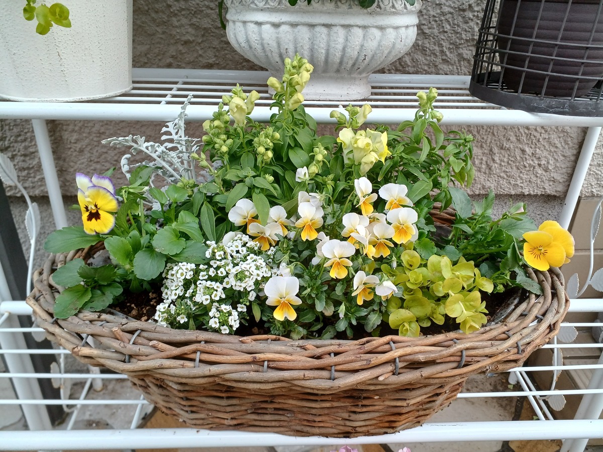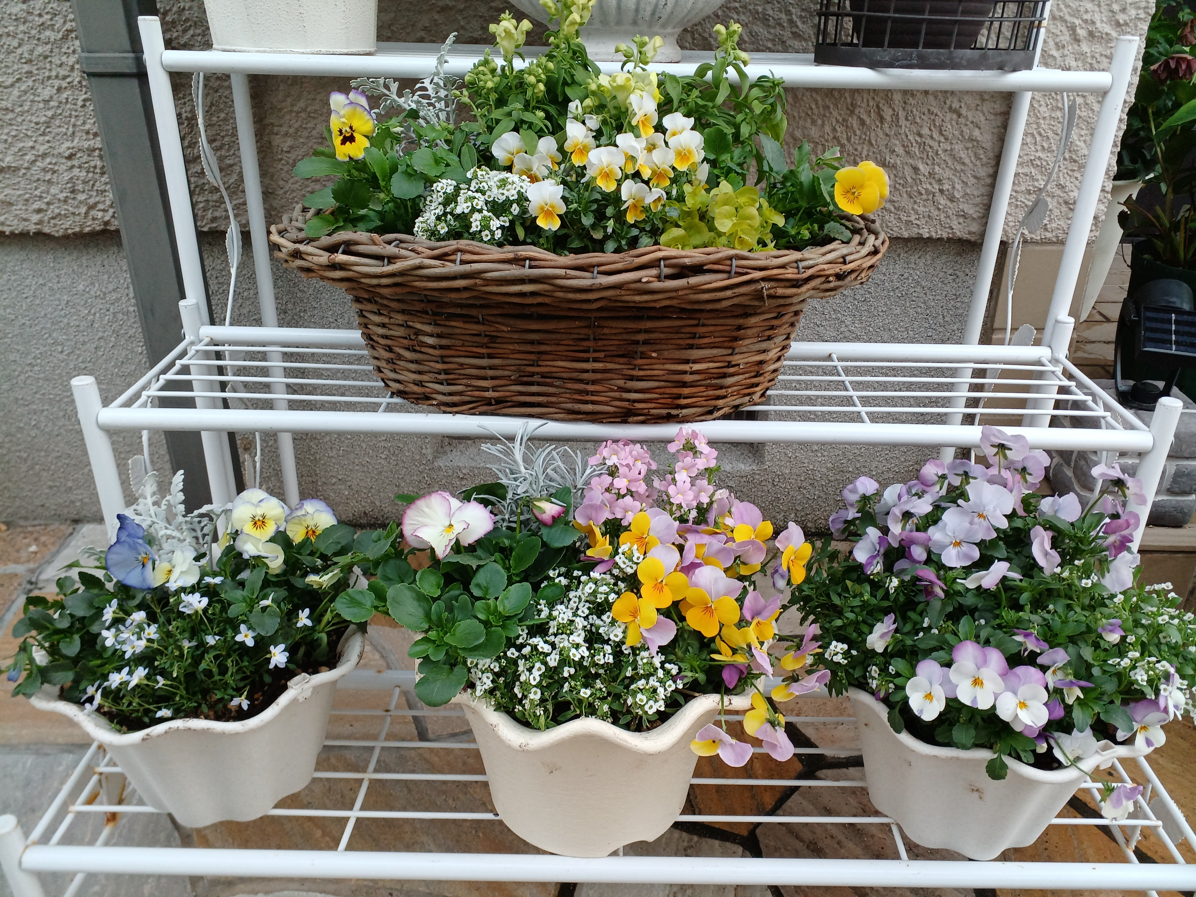 センターのビオラはモリモリ咲いてるけど、キンギョソウや左右のパンジーが咲き出すとふわっと可愛くなると思います💕