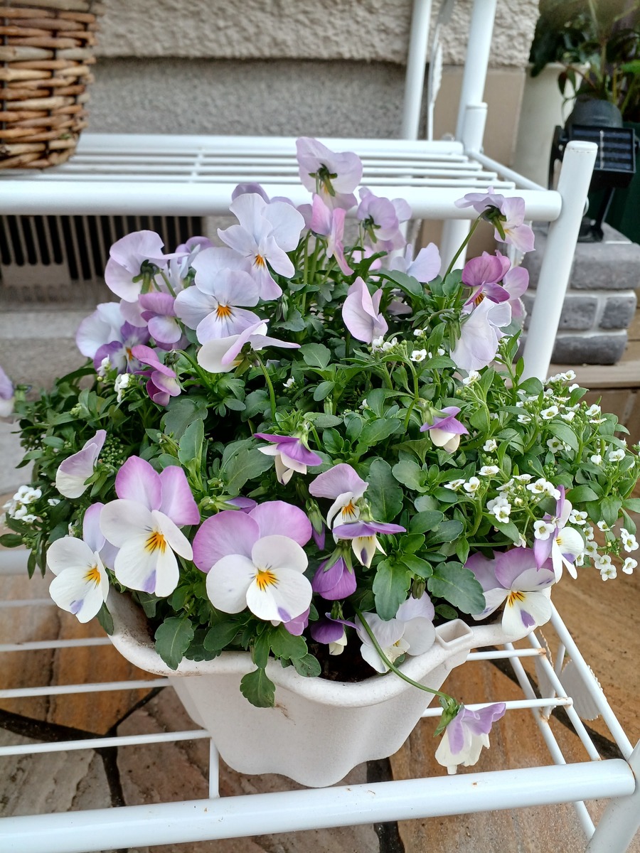 寄せ植えするのが遅くて、ビオラ育ち過ぎ伸びすぎてしまいましてが、やっと小さなポットから脱出‼️