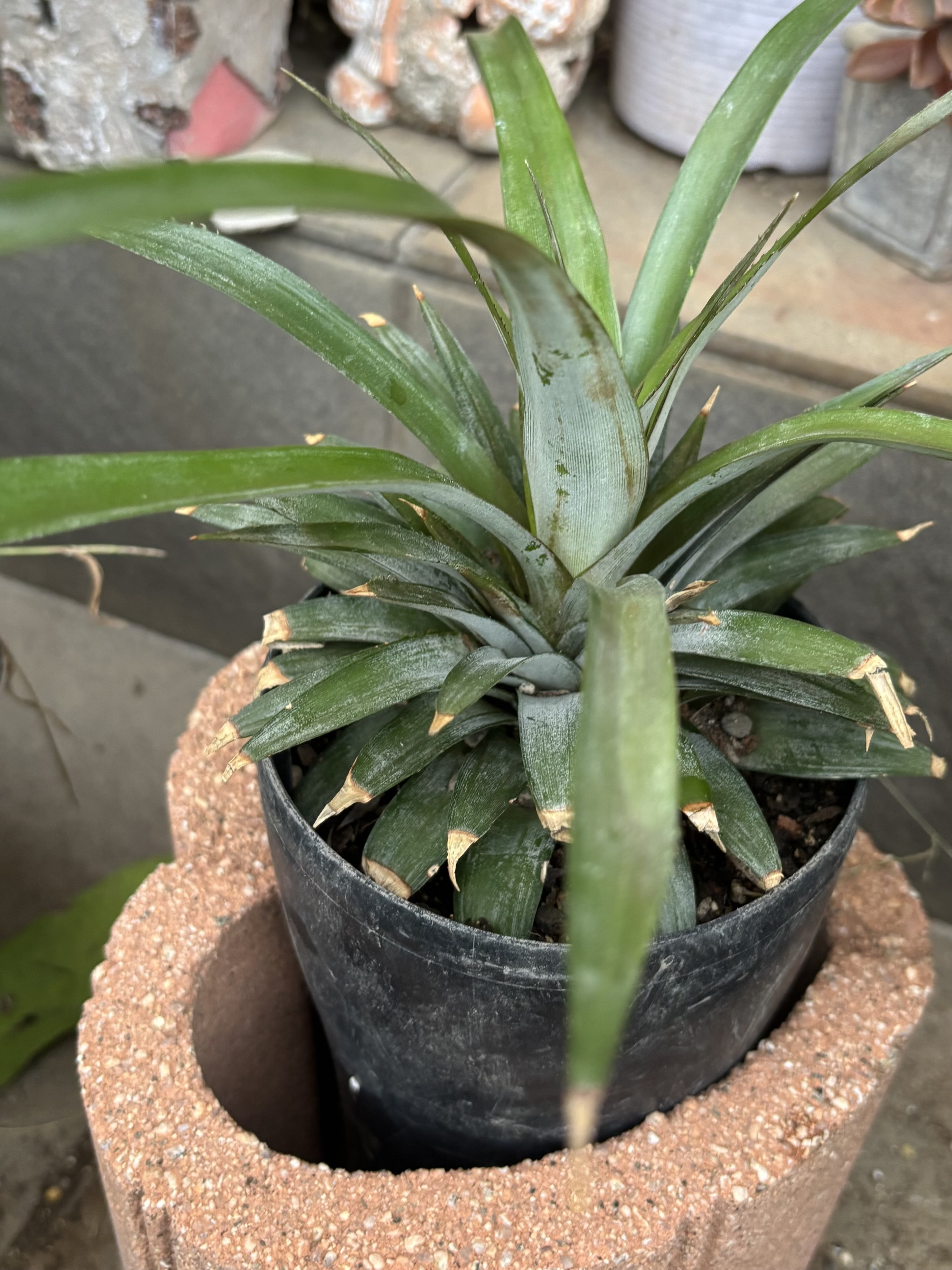 ワンコに葉を食べられて駄目になってしまったパイナップル。