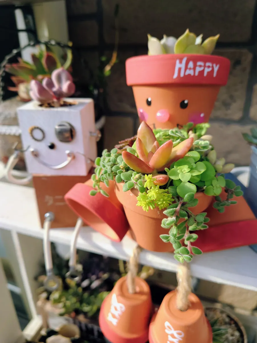 投稿を表示お顔手入れして可愛いですね。多肉もテラコッタに合っていて素敵です。2枚目のお写真、後ろの鉢植えも素敵です✨