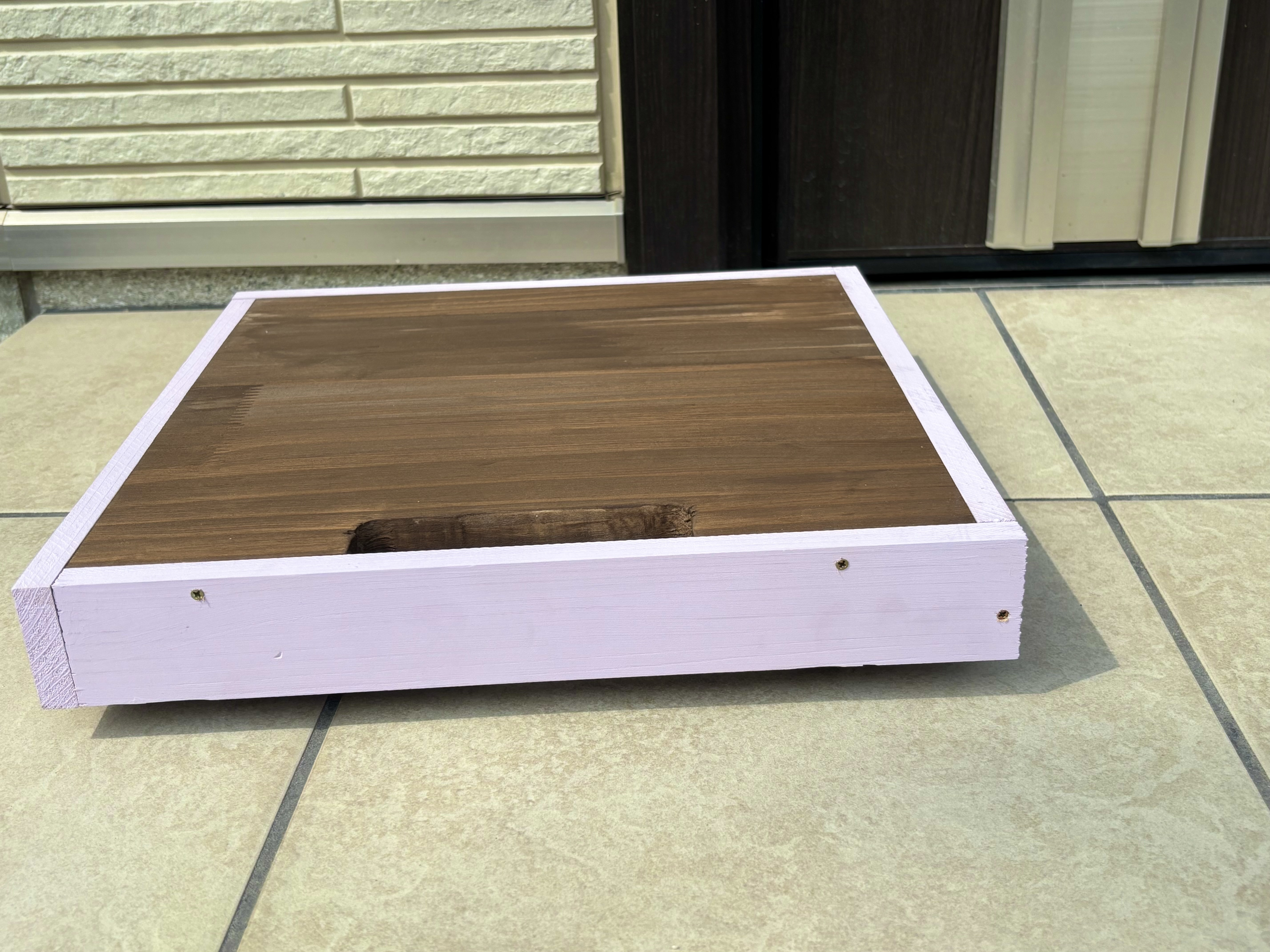ずっと作りたかったサーキュレーターが置けるキャスタートレイ (SN-73) Lv.♪を作って来ました😆なんと今日もおひとり様✨台座部分はステインからとの事だったので、最初選ぼうと思ってた超撥水ブラウンに近いウォルナット🤎に、枠はライラックにしました。ジグソーの刃を入れた途端に2ミリ大の破片が目に飛び込んできてなかなか取れず、5分くらいかかってしまいました💦枠と台座の段差が出来てて慌てましたが、アドバイザーさんに直してもらえて無事完成しました😊おかげでお気に入りが増えました✨ありがとうございました💕