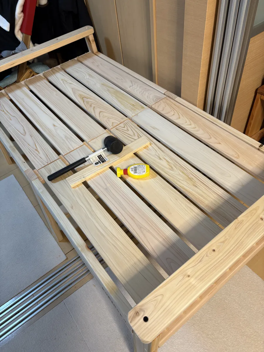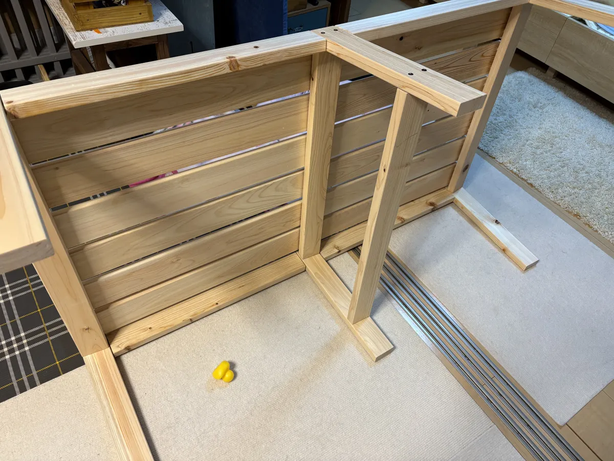トップ > DIY > インテリア > フラッティ連結ベンチ びーさん 2026/01/25 09:43 フラッティ連結ベンチ フラッティのマットを置けるベンチがあるのは知っていましたが、ペットゲージを外して置き場所ができたので作ってみました。kumimokuのキットで組み立てるだけなのですが、ダボの打ち込みに苦戦しました… 家族にハンマー🔨の音がうるさいと言われながらも…お気に入りスペースが完成しました❣️ お正月にカインズで購入したベッドがお気に入り💕 いいね 共有する 共有する X LINE リンクをコピー コメントする 4 件の返信 (新着順) ミュートしたユーザーの投稿です。 投稿を表示 はっちゃん 2026/01/29 09:47 いい考えですね💡 いいね 返信する ミュートしたユーザーの投稿です。 投稿を表示 びーさん 2026/01/29 19:56 はっちゃん ありがとうございます😊 ワンコ🐶も気に入ってるみたいです😆 いいね 返信する ミュートしたユーザーの投稿です。 投稿を表示 パール 2026/01/25 15:41 ワンちゃんと近くで横にもなれて良いですね😊🎶 いいね 返信する ミュートしたユーザーの投稿です。 投稿を表示 ちわ 2026/01/25 13:54 CAINZで売ってるのを見て作りたくなったんですが置くところが… ダボがあるんですね🥺買わなくて正解だった笑 わんちゃん気持ち良さそう😊 いいね 返信する ミュートしたユーザーの投稿です。 投稿を表示 びーさん 2026/01/25 16:29 ちわ ちわさん ダボは連結のためのもので、すでに穴も開いてますし、ボンドをつけて入れ込むだけなのです。丸棒を入れて切ったりはしません。ただダボ穴は強度を保つためなのか深くて、また木の収縮なのかきつめでハンマーでの打ち込みが必要でした。さらにビス止めしますが、もちろん下穴があいているので、取説の手順で大丈夫でしたよ😉 いいね 返信する ミュートしたユーザーの投稿です。 投稿を表示 るなちゃん 2026/01/25 11:17 ベンチ素敵ですね〜❤️ 私もフラッティのマットは2枚購入しましたが、床に直おきなので😅 ワンちゃんもぬくぬくで気持ちよさそう🐶 いいね 返信する