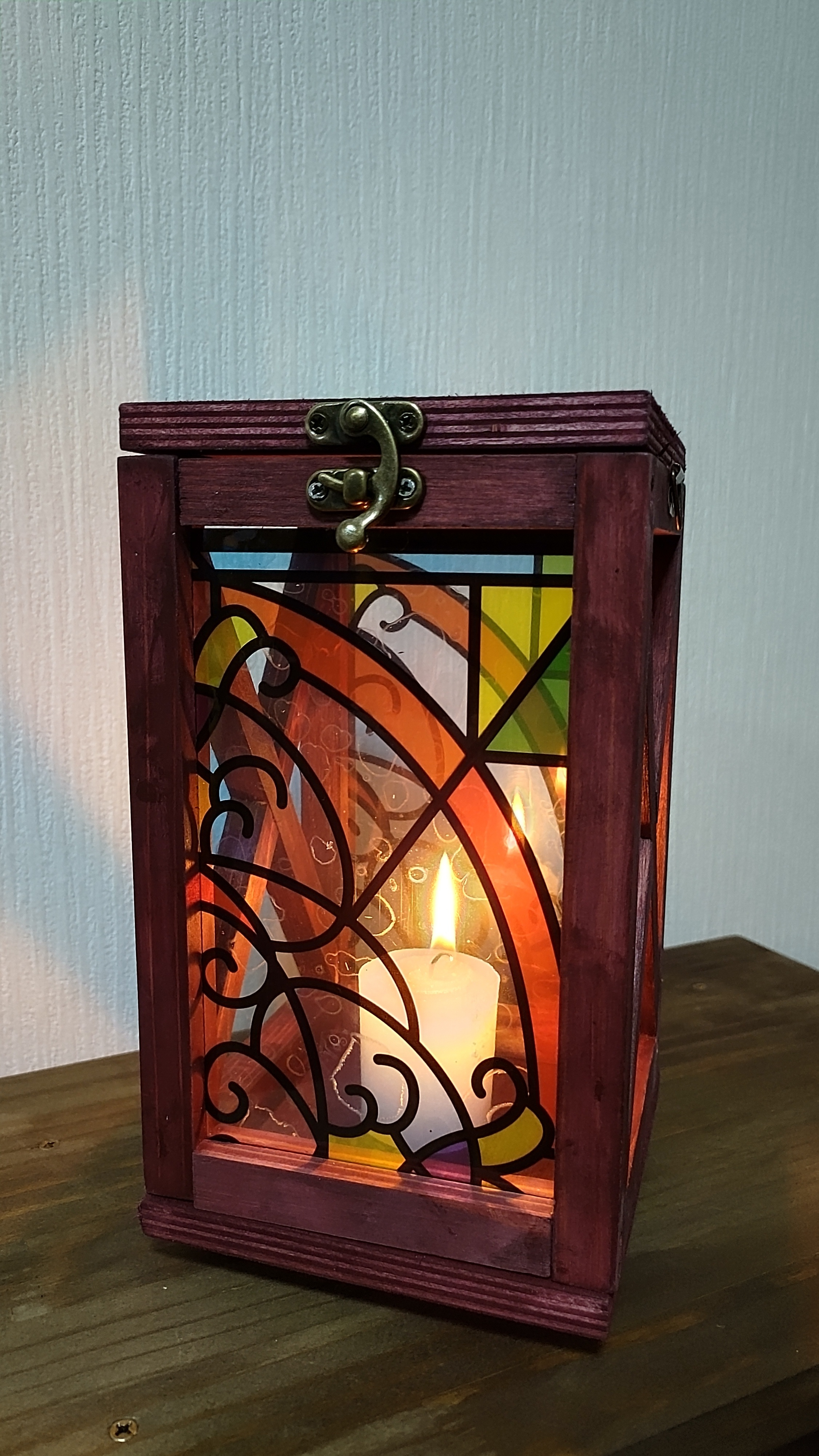 ステンドグラスとランタンの色合いがとてもレトロな雰囲気を醸し出してくれていますね。