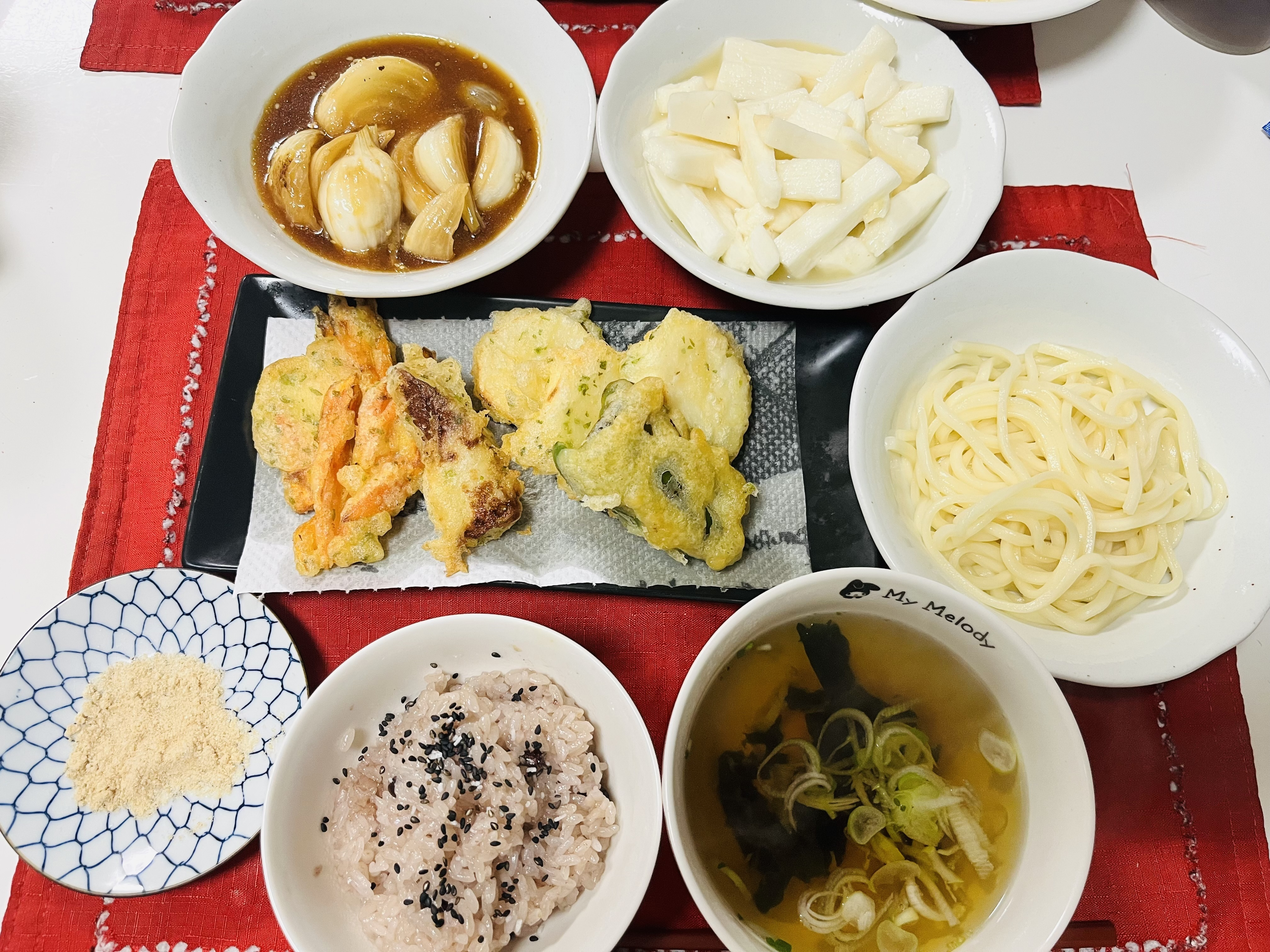 トップ > クッキング > 料理 > 今日の夕飯 ぱんだ 2026/02/10 18:01 今日の夕飯 お祝いみたいになっちゃった🤩 お赤飯 天ぷら(ピーマン🥕、ちくわ、山芋) 香川のうどん 新玉ねぎの漬け 山芋のわさび醤油漬け 天ぷらは、これだけ‼️‼️と決めて材料を出します。……じゃないと、ずっと揚げてる感じになっちゃって次の日まで残ってしまうので💦 少ししかウォーキングしてきてないのに腹減った🚶♀️💦 いいね 共有する 共有する X LINE リンクをコピー コメントする 2 件の返信 (新着順) ミュートしたユーザーの投稿です。 投稿を表示 さいく💚 2026/02/11 01:17 御赤飯でお祝い膳だね😃品数豊富で素敵なお食事いいなー😘食べてなくても見ただけで絶対美味しいと思います😃💕 いいね 返信する ミュートしたユーザーの投稿です。 投稿を表示 ぱんだ 2026/02/11 01:20 さいく💚 たまたま品数があったのよー。 いつもは貧相なのよꉂ🤣𐤔 まるで、誰かのお祝い㊗️みたいだよね😂 お赤飯って。もち米ってつい…いくらでも食べられちゃうんだよねー😊 いいね 返信する ミュートしたユーザーの投稿です。 投稿を表示 tanikyu 2026/02/10 23:33 アイキャッチ画像見た時、お祝膳⁇と思っちゃいました🤭 お赤飯と敷いてある赤色のランチョンマット?がそれっぽく見えますよね❤️ 品数もたくさんあってどれも美味しそう🎶 いいね 返信する ミュートしたユーザーの投稿です。 投稿を表示 ぱんだ 2026/02/11 00:37 tanikyu ホント‼️お祝い膳に見えるよねー‼️㊗️ あれこれ少量づつやってたら増えちゃった♡ たまにはもち米🍚と思って炊いてみた! もち米って、いくらでも食べれちゃう🤣 いいね 返信する
