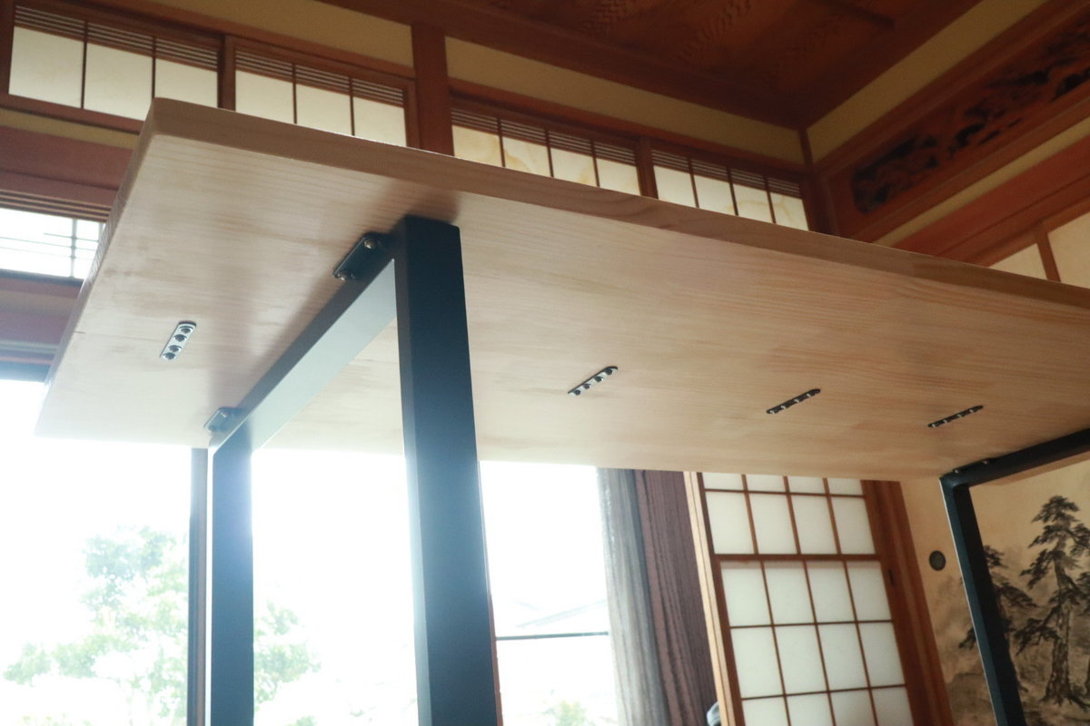 2枚の板を合わせたときに微妙に高低差が出てしまったので、裏から繋ぎ金具で固定して修正しました。