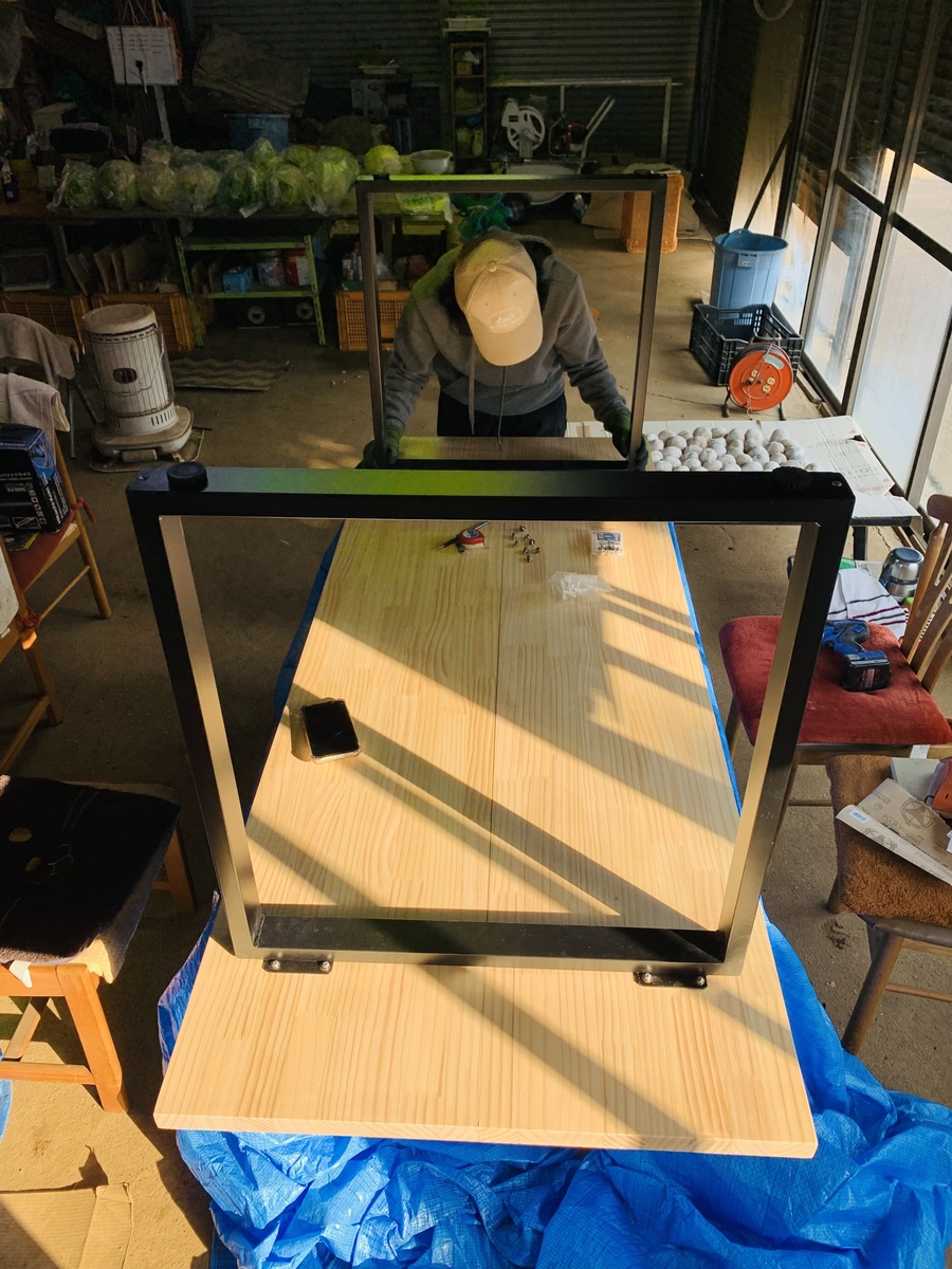 投稿を表示作業場も広い😲母屋も広い😲こんな大きな机作っても、狭さを感じないビックリ‼️脚は、アイアンですか?カッコいい机、自分が作りたい物の案にこの形、配色の机が入ってて、ドンピシャです🤔