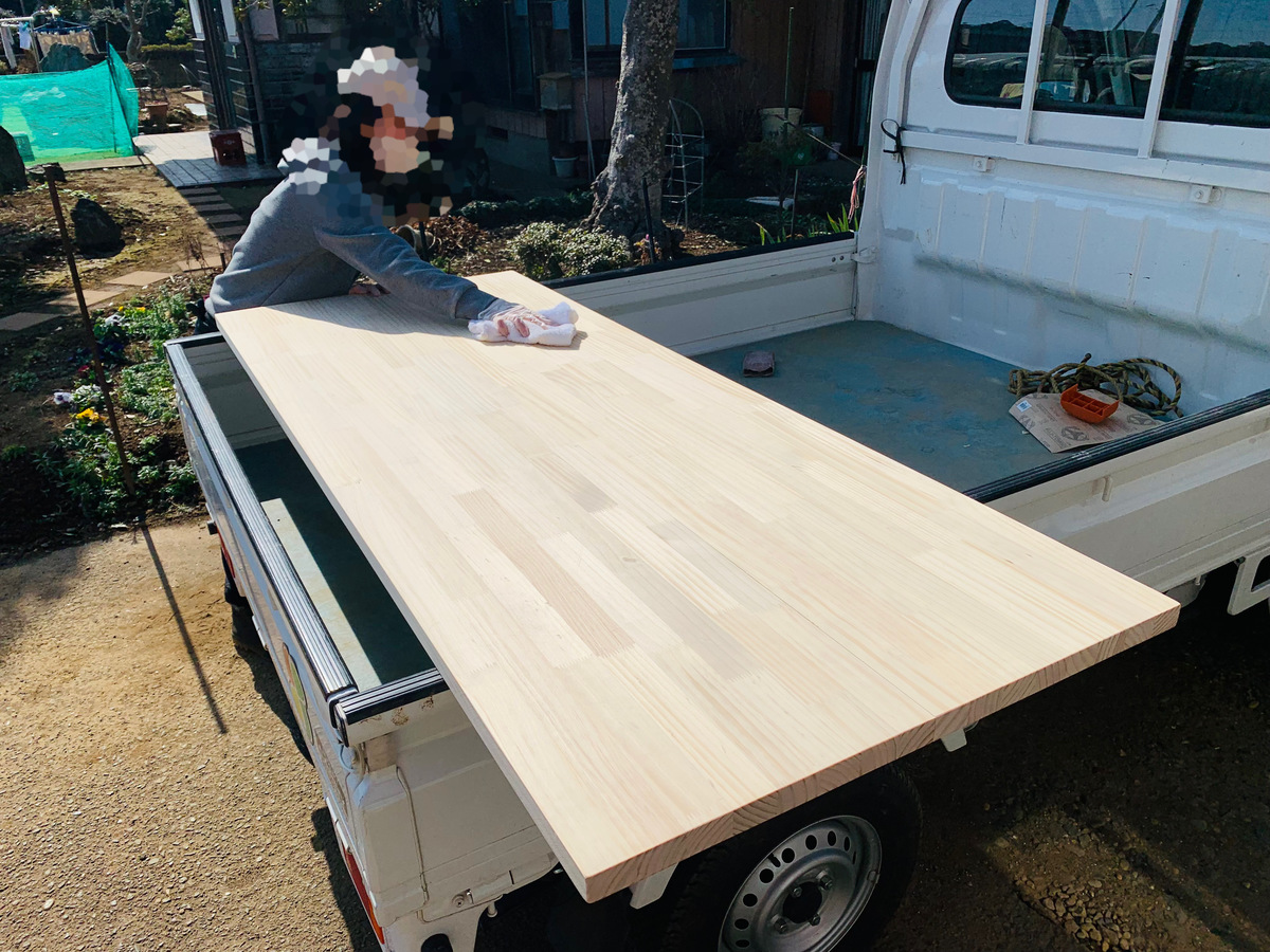 あとでわかったんだけど、2枚分の幅の1枚板は店頭には置いてないけど取り寄せできるらしく