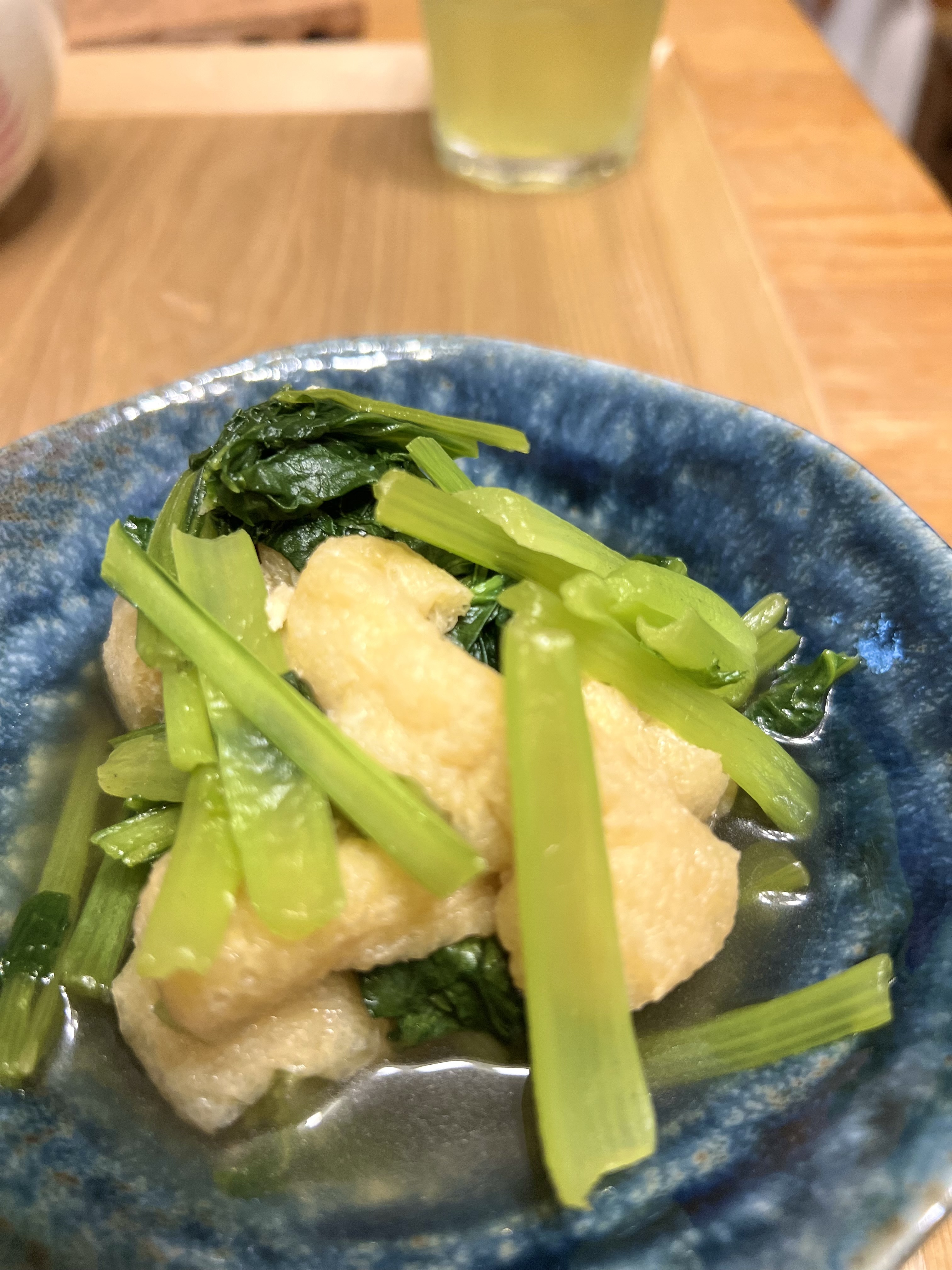 ほんのり苦みのある小松菜の煮物は大人の味かも。😋