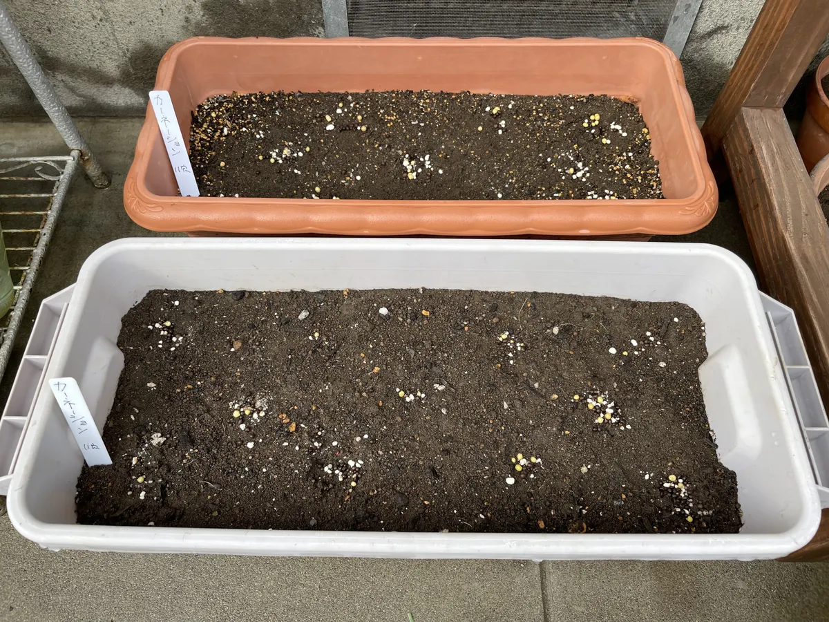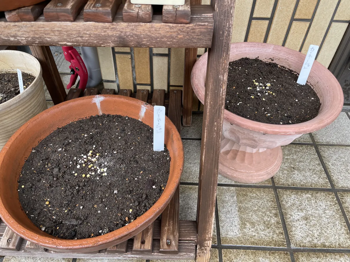 トップ > グリーン > ガーデニング > 秋蒔きの花の種蒔き その3 ソラ5551 2025/10/20 17:43 秋蒔きの花の種蒔き その3 秋の種蒔き、コレでひと段落とします。 カーネーションの種、パッケージには2cm間隔で種蒔きって書いてるんですけど、5cmくらいの間隔で2〜3粒で軽く覆土してみました。↓ コチラは中央に10粒くらいまとめて蒔きました。↓ 一昨年、昨年となんとか咲いたので今年も🙏 いいね 共有する 共有する X LINE リンクをコピー コメントする 1 件の返信 (新着順) ミュートしたユーザーの投稿です。 投稿を表示 かずん 2025/10/20 20:58 カーネーションの種って売ってるんですね😳✨ 家で咲いたら嬉しいですね💕︎ いいね 返信する ミュートしたユーザーの投稿です。 投稿を表示 ソラ5551 2025/10/20 21:40 かずん 売ってます😀 ウチで咲いたら嬉しい花ですね。ただ、アブラムシが結構飛んできますよ👀 いいね 返信する
